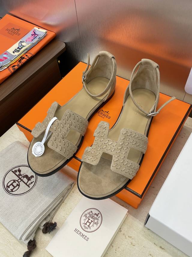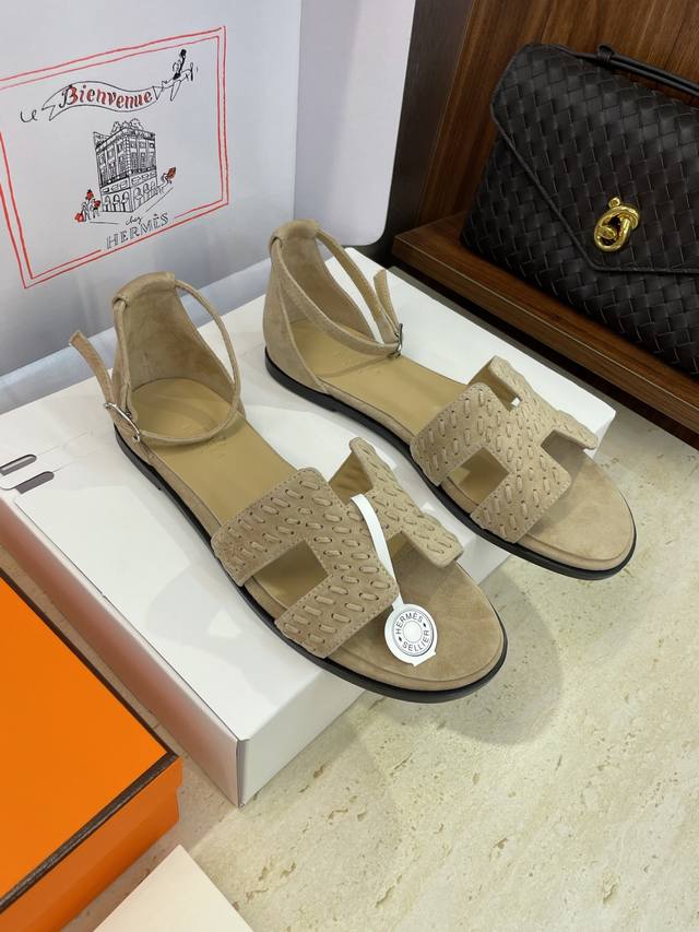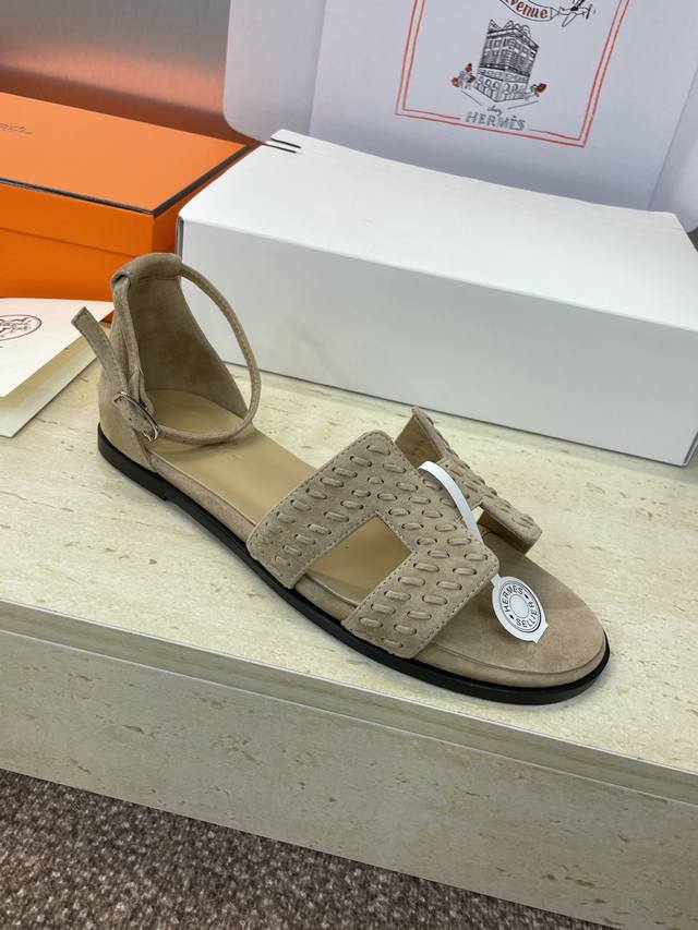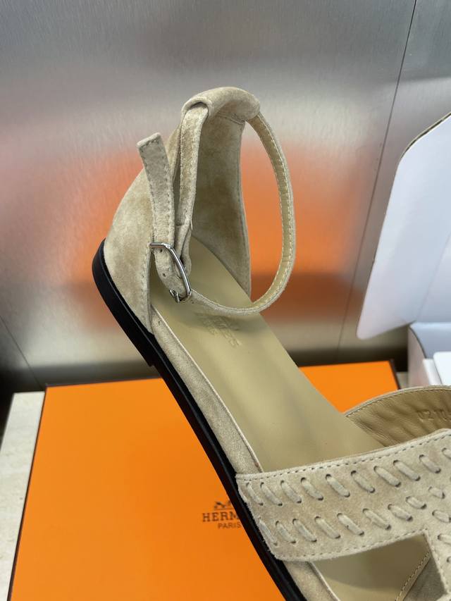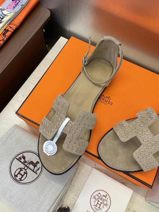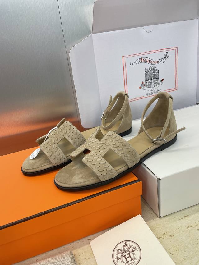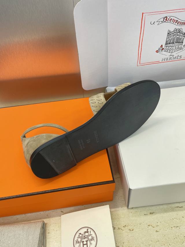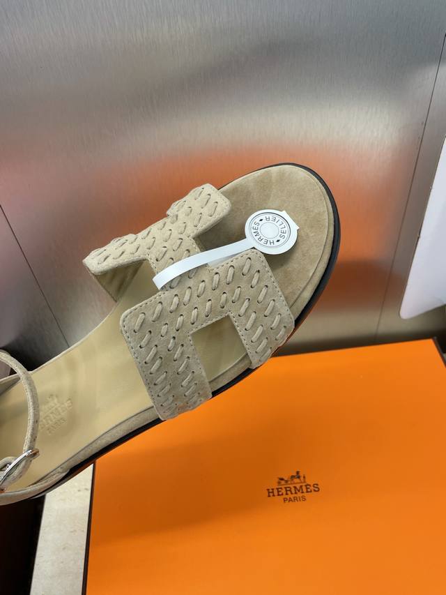 Hermes 2025 Spring and Summer New Color Classic Santorini Colorblock Flip Flops Women's Shoes H Family Flat Round Toe One Circle Strap Open Toe Hollow Sandals