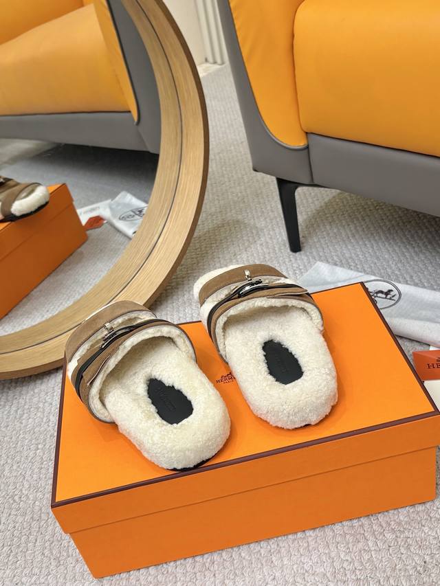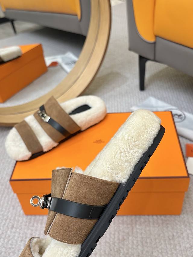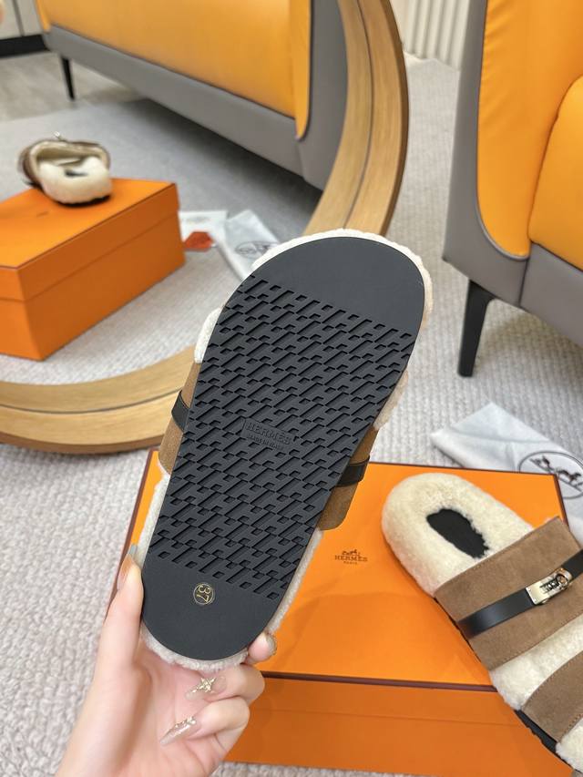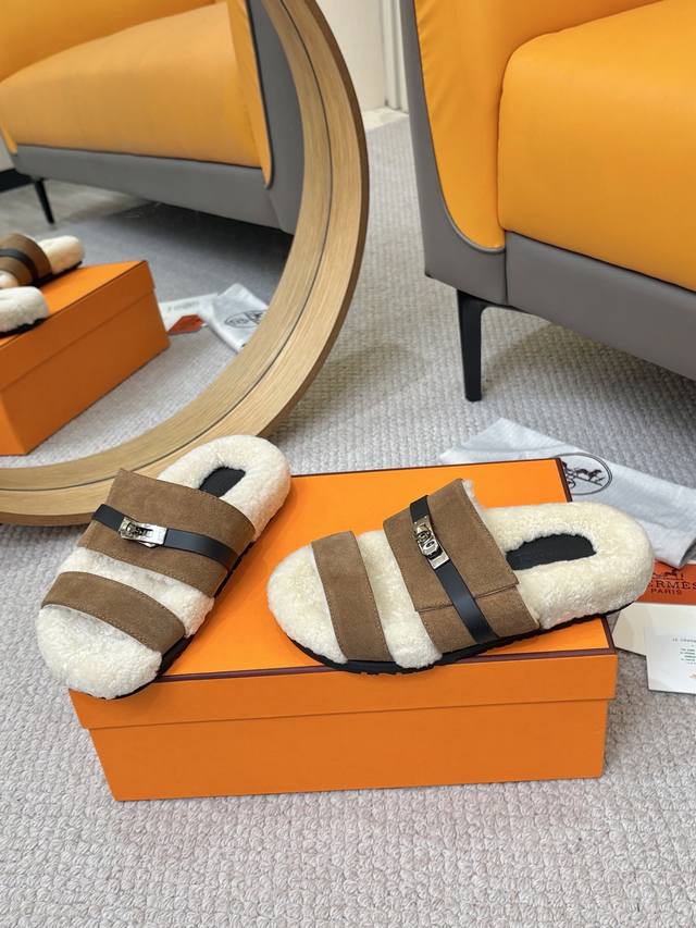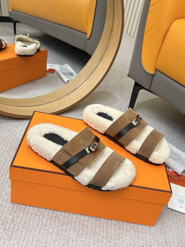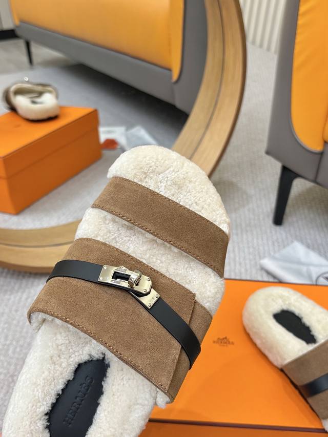 Hermes Hermes 2025 Autumn and Winter Kelly Fur Slippers
