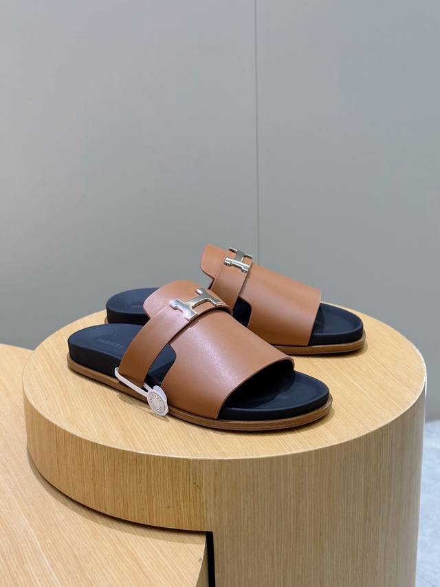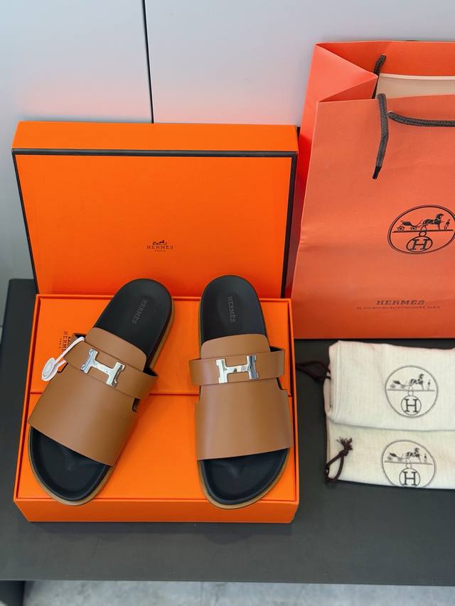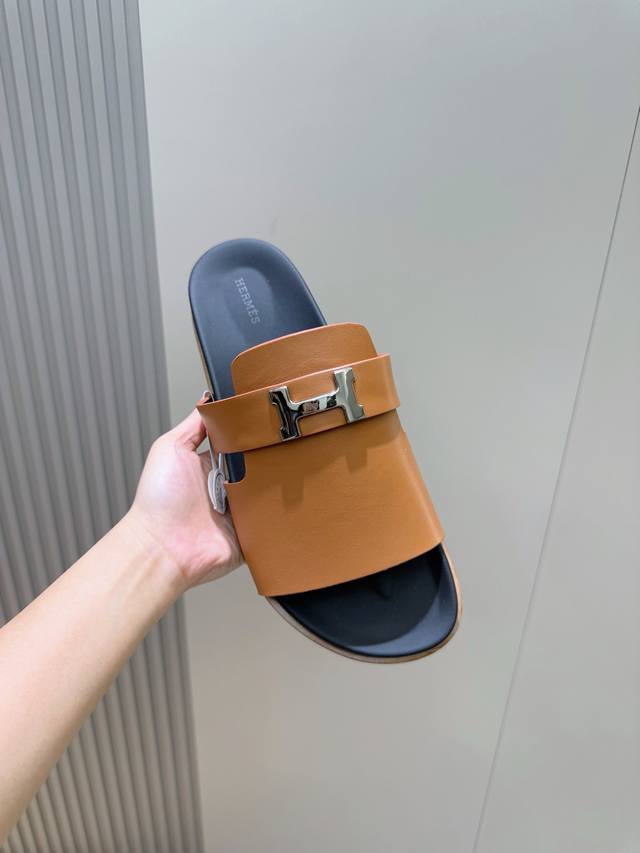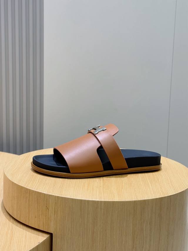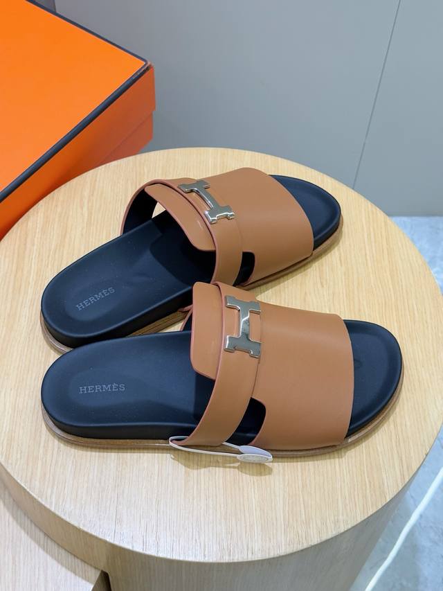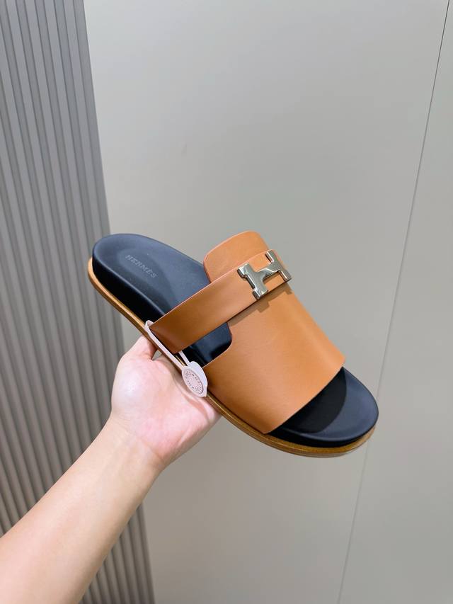 Factory Price: Ddd Hermes H New Men's Slippers - Top-grade Genuine Leather Sandals with Metal Buckles, Classic and Timeless Style, Stands the Test of Time. Ddd Imported Calfskin Upper + Cowhide Lining + Italian Genuine Leather Outsole Ddd Size: 39-44 39.45, 46 Custom Made Ddd Ddd