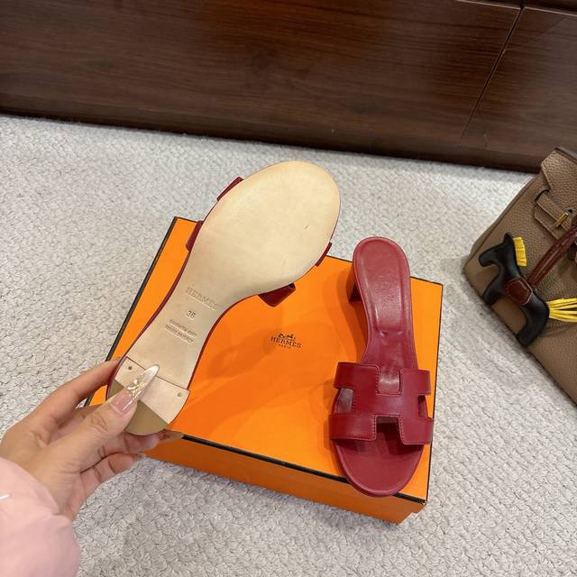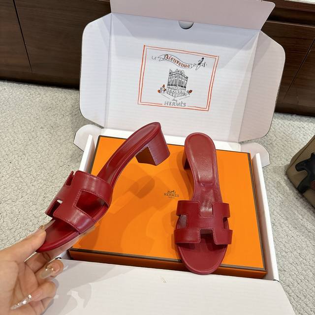 Factory Price Hermes Oasis Sandals, stylish and versatile, super comfortable, every detail is perfect. Original Swift calfskin, 1:1 original, exclusive private mold upper, original genuine leather outsole. Heel height: 5cm. Packaging: Each pair of shoes comes with two Hermes silk scarves. Size: 34~42. Custom sizes 34, 40, 41, 42, 43 are non-refundable and non-exchangeable.