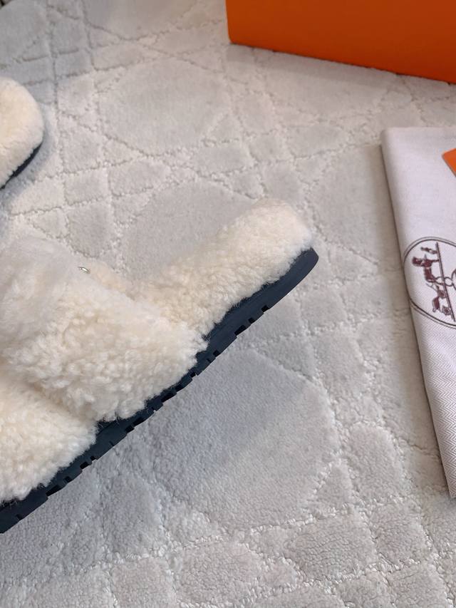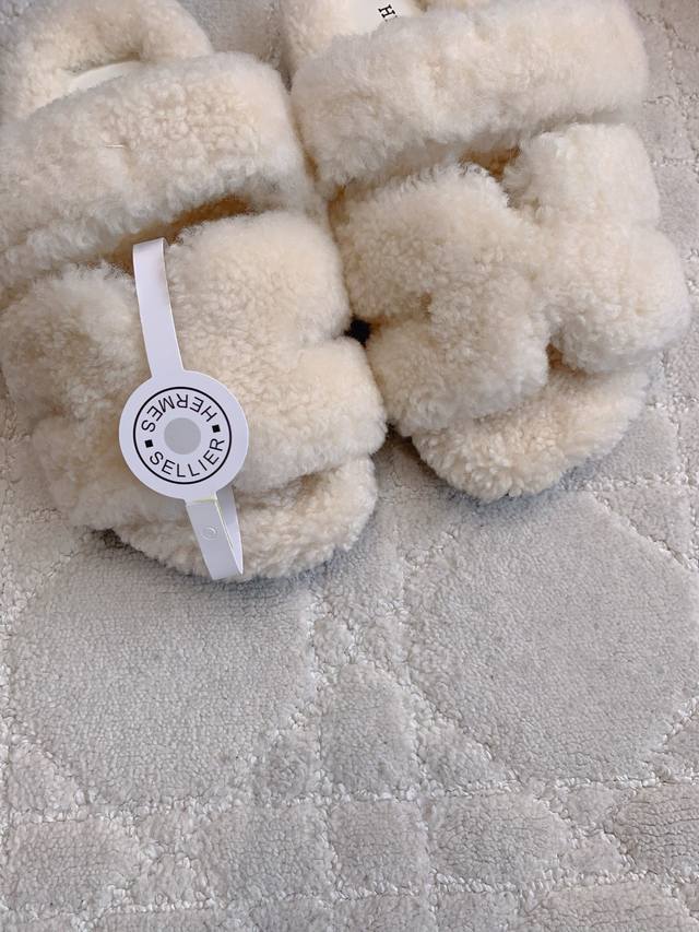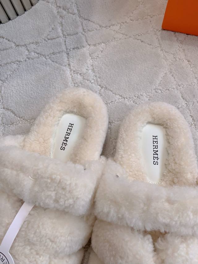 Herme* classic style Erjiu fur slippers Super thick Australian imported wool feels like stepping on clouds and lengthens the leg line