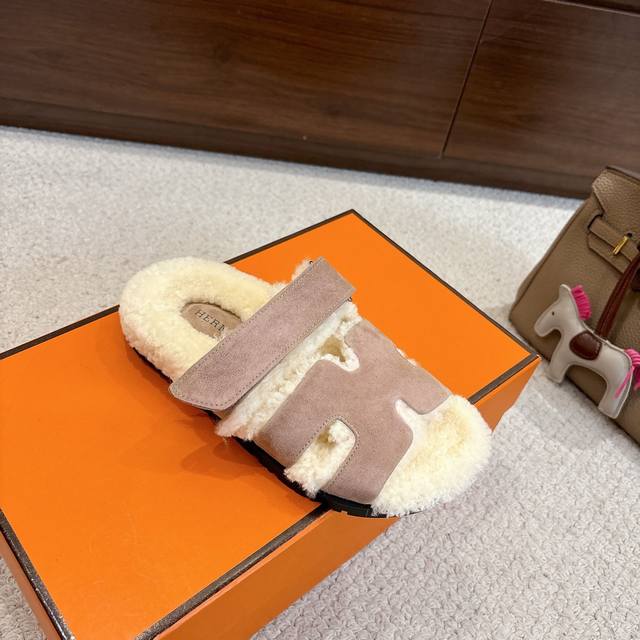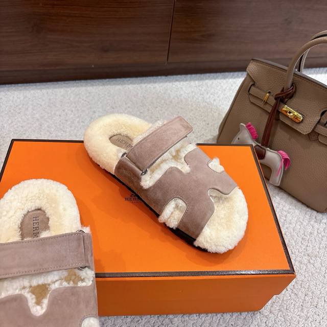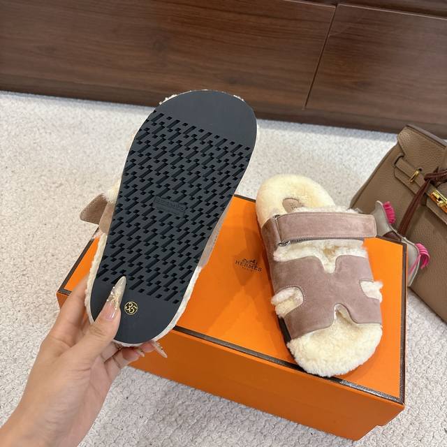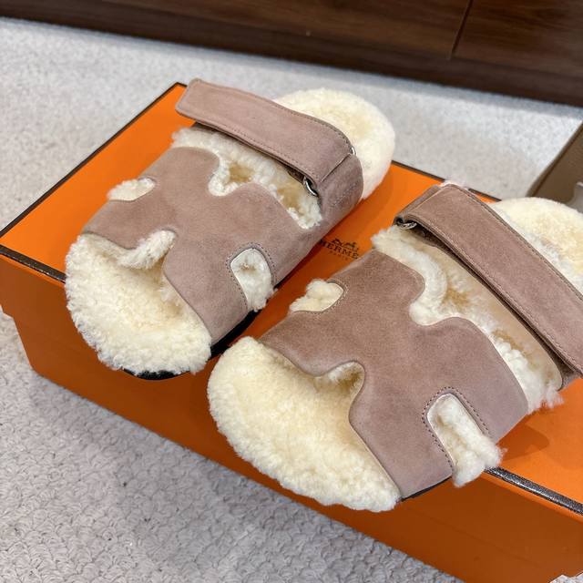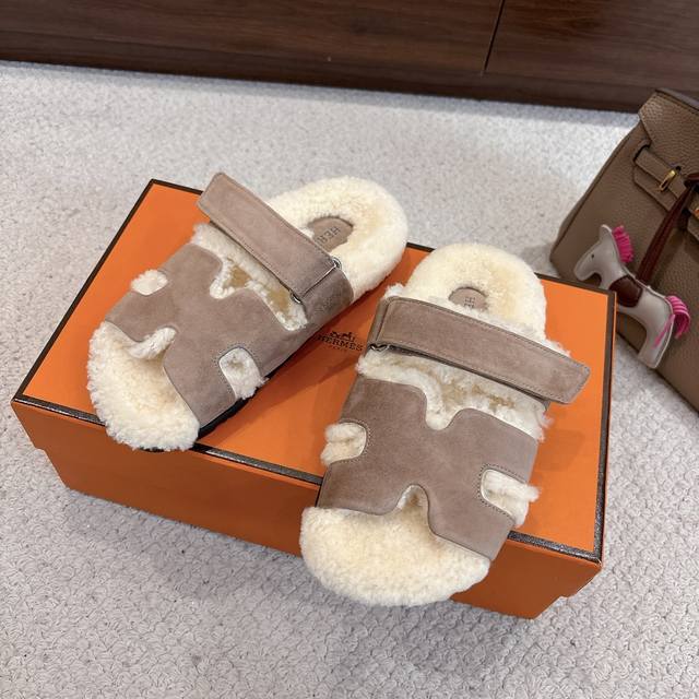 Factory price p Hermes Chypre sandals, second uncle lambswool slippers, fresh and bright new ~ fashionable, energetic and refreshing. No need to explain, those who have bought it know