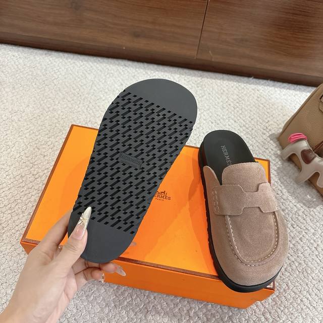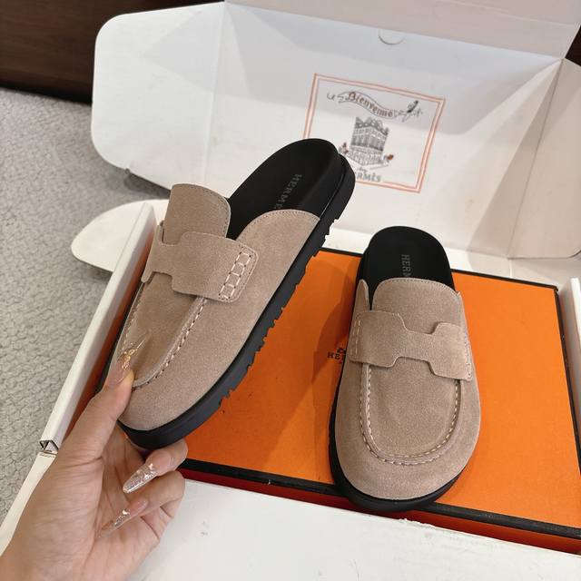 Factory Price P Hermes Classic Go Mule Slip-on Series - Stylish and Versatile, Super Comfortable, Every Detail is Meticulously Crafted. Original Crystal Sheepskin Suede, 1:1 Exclusive Private Mold, Tpr Platform, Original Private Mold, Rubber Outsole. Sizes: 35~41 (40.41) Custom Made, No Returns or Exchanges.