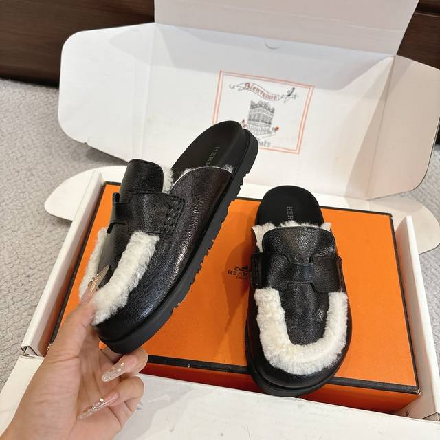 Factory Price P Hermes Classic Go Mule Slip-on Series - Stylish and Versatile, Super Comfortable, Every Detail is Meticulously Crafted. Original Crystal Sheepskin Suede, 1:1 Exclusive Private Mold, Tpr Platform, Original Private Mold, Rubber Outsole. Sizes: 35~41 (40.41) Custom Made, No Returns or Exchanges.