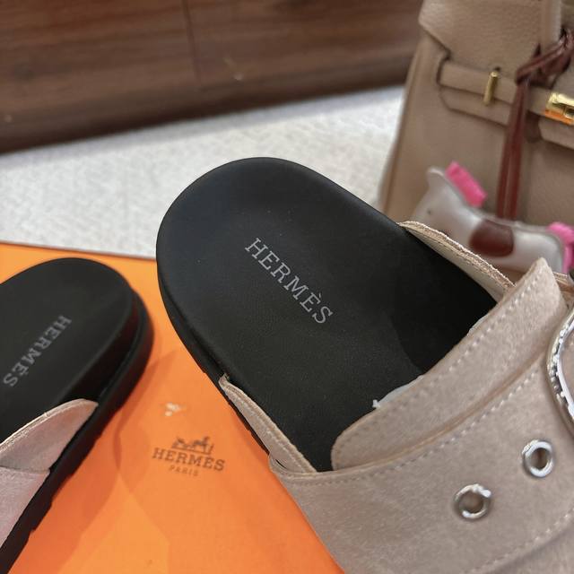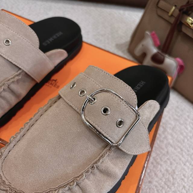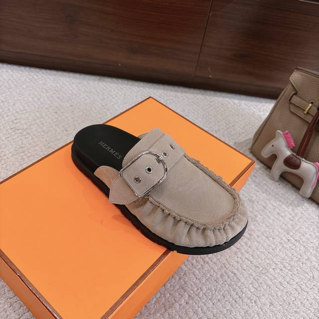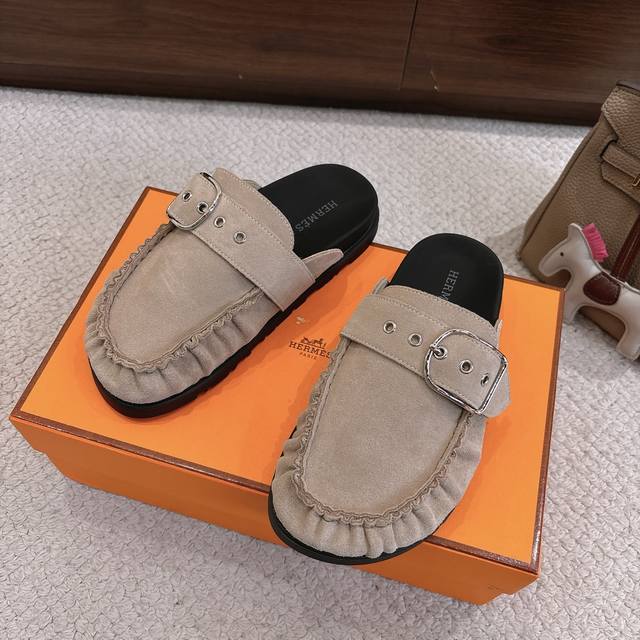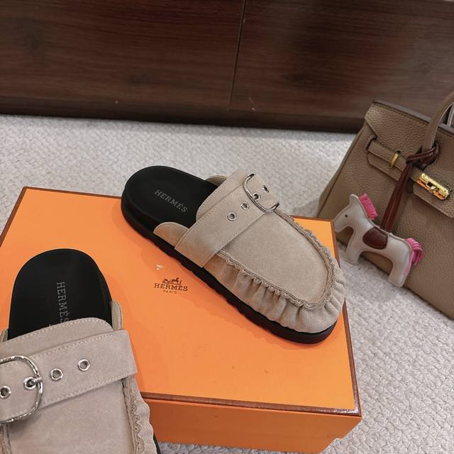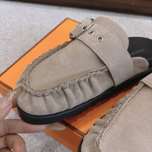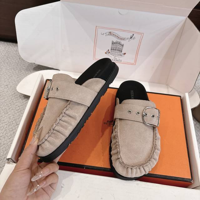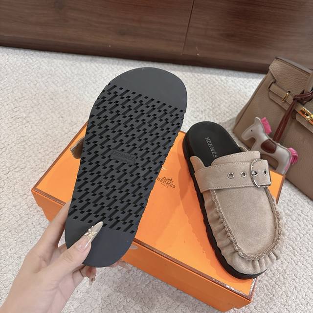 Factory Price P Hermes Classic Key Mule Slip-on Series: Stylish and Versatile, Super Comfortable. Every detail is meticulously crafted. Original cow suede upper, 1:1 exclusive private mold, Tpr platform, original private mold, rubber outsole. Sizes: 35~41, 40.41. Custom orders, no returns or exchanges.