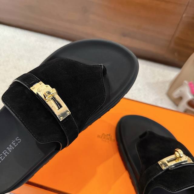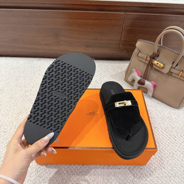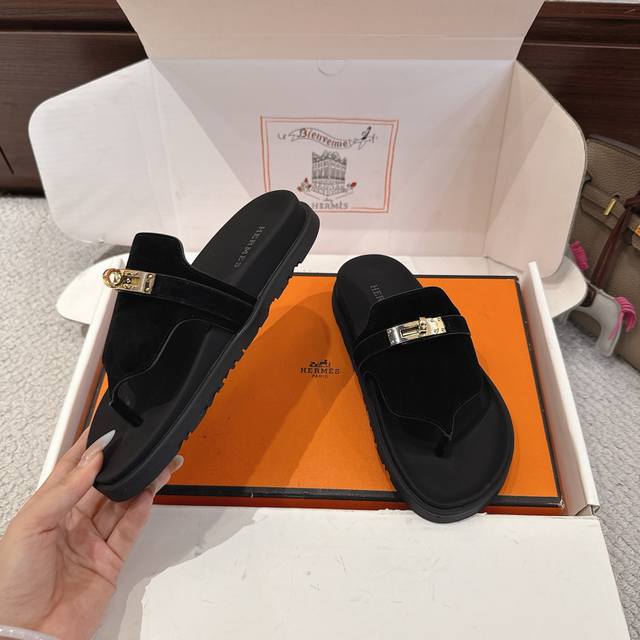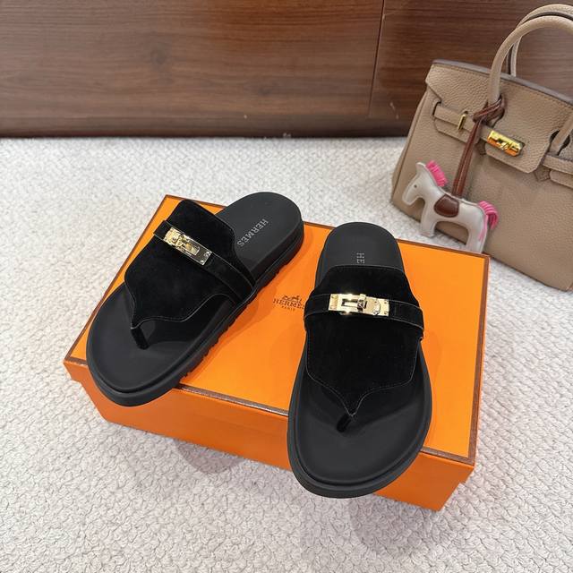 Factory Price P Hermes Classic Thong Sandals Empire Series Stylish and Versatile, Super Comfortable, Every Detail is Perfect. Original Swift Calfskin Suede, 1:1 Exclusive Private Mold, Pure Steel Kelly Hardware Buckles, Original Private Mold Outsole. Size: 35~41. 40.41 Custom Made, No Returns or Exchanges.