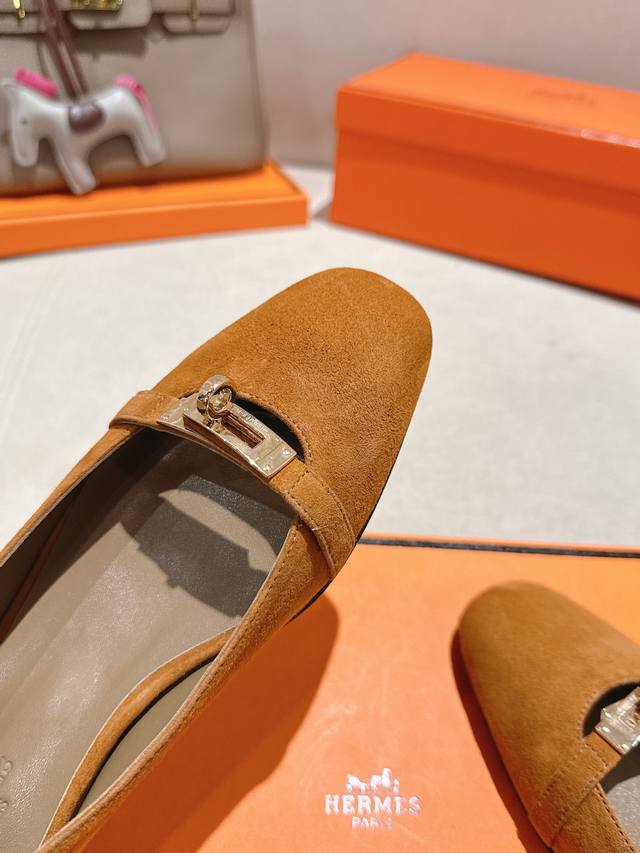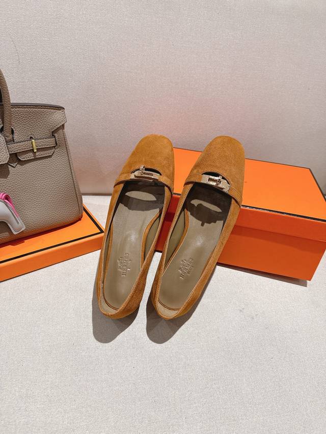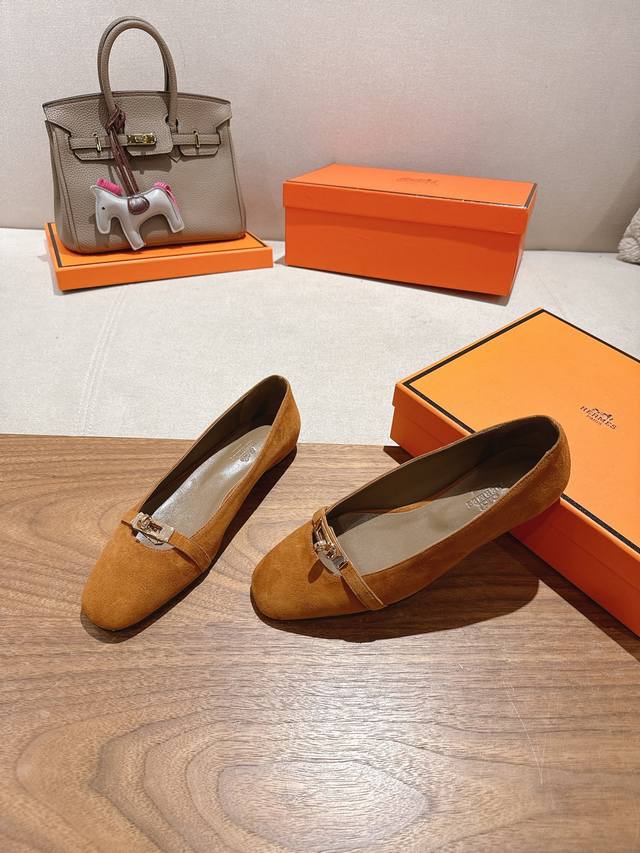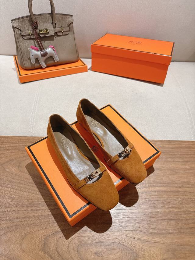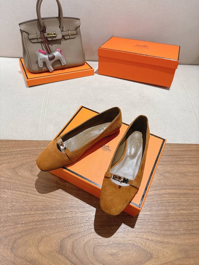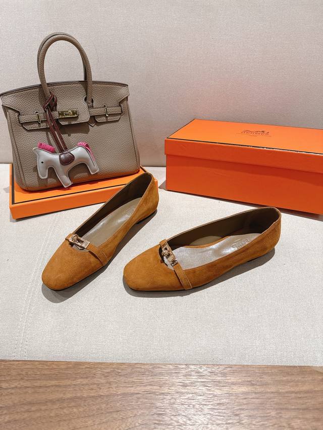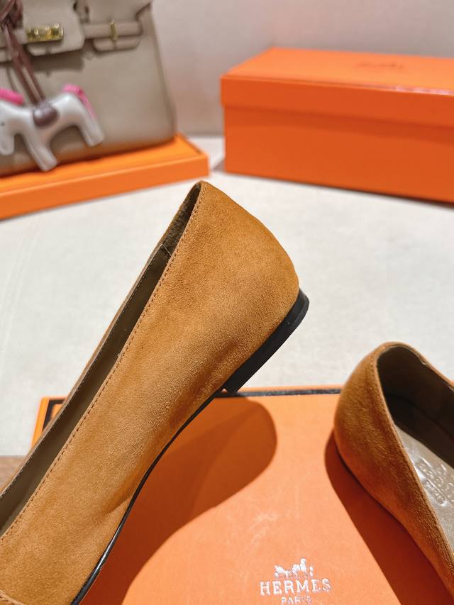 Factory Price P Hermes Jane Ballet Flats, stylish and versatile, featuring a super comfortable Hapi buckle. Every detail is meticulously crafted, with a matching monochromatic signature buckle design for a simple and elegant look. Original genuine leather combination sole. Sizes: 35-41. 40.41 Custom orders are non-refundable and non-exchangeable.