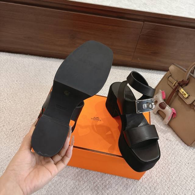 Factory Price P Hermes Lola 35 Sandals, stylish and versatile, paired with Kelly. Pure steel buckle, super comfortable. Every detail is meticulously crafted. The H-shaped design is simple and smooth, creating a fashionable and feminine look. Original calfskin, 1:1 original, exclusive private mold with logo, outsole not available on the market. The logo is laser-applied. Please recognize our exclusive private mold production. Heel height: 7.5cm, forefoot height: 4.0cm. Size: 35-42, 40, 41, 42. Custom orders are non-refundable and non-exchangeable.