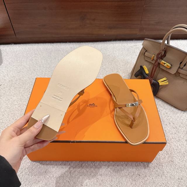 Factory Price p Hermes Miss Sandals series, stylish and versatile, super comfortable, every detail is perfect. Original cowhide material, original 1:1 exclusive private mold upper, exclusive private mold pure steel with curved Kelly hardware, original genuine leather welt, outsole. My hardware is curved like the original, not straight like the market version. Size: 34~42. 34, 40, 41, 42, 43 are custom-made, no returns or exchanges.