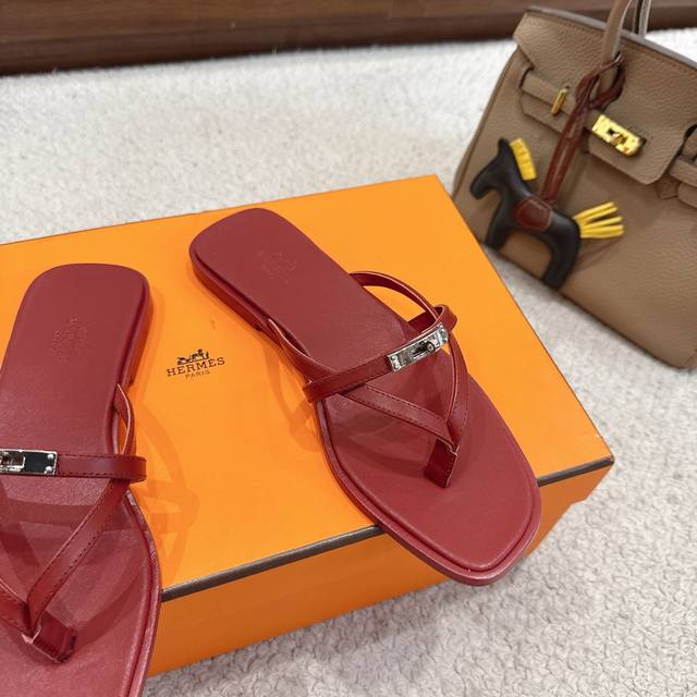 Factory Price p Hermes Miss Sandals series, stylish and versatile, super comfortable, every detail is perfect. Original cowhide material, original 1:1 exclusive private mold upper, exclusive private mold pure steel with curved Kelly hardware, original genuine leather welt, outsole. My hardware is curved like the original, not straight like the market version. Size: 34~42. 34, 40, 41, 42, 43 are custom-made, no returns or exchanges.