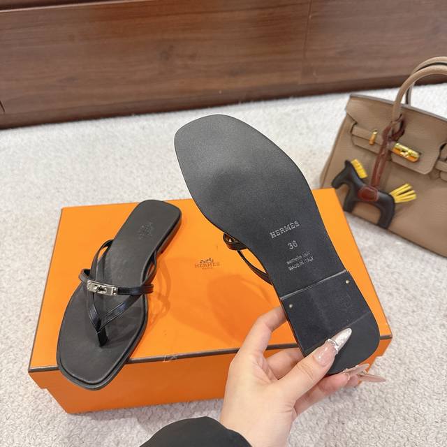 Factory Price p Hermes Miss Sandals series, stylish and versatile, super comfortable, every detail is perfect. Original cowhide material, original 1:1 exclusive private mold upper, exclusive private mold pure steel with curved Kelly hardware, original genuine leather welt, outsole. My hardware is curved like the original, not straight like the market version. Size: 34~42. 34, 40, 41, 42, 43 are custom-made, no returns or exchanges.