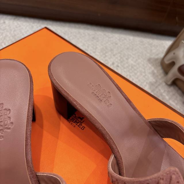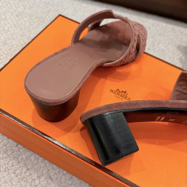 Factory Price P Hermes Oasis Sandals, stylish and versatile, super comfortable, every detail is perfect. Original Swift calfskin, 1:1 original, exclusive private mold upper, original genuine leather sole. Heel height: 5cm. Packaging: Each pair of shoes comes with two Hermes silk scarves. Size: 34~42. 34, 40, 41, 42 are custom-made, no returns or exchanges.