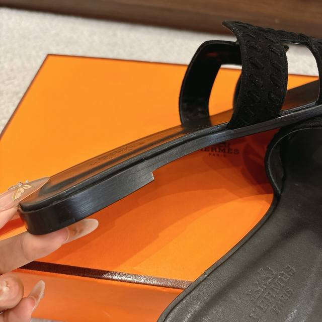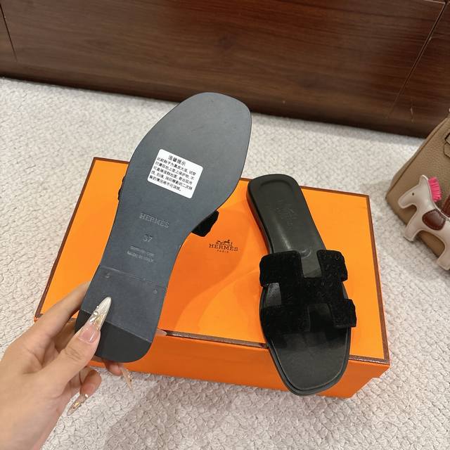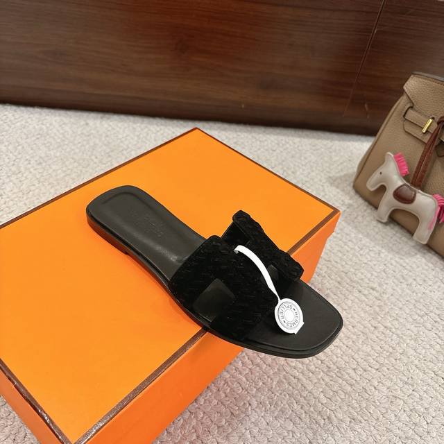 Factory Price P Hermes Oran Sandals, stylish and versatile, super comfortable. Every detail is meticulously crafted. Original fine suede material, 1:1 original, exclusive private mold, original genuine leather welt, outsole. Packaging: Each pair of shoes comes with two Hermes scarves. Size: 34~42. Sizes 34, 40, 41, 42, 43 are custom-made, non-refundable and non-exchangeable.