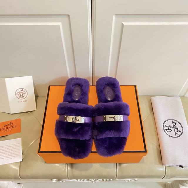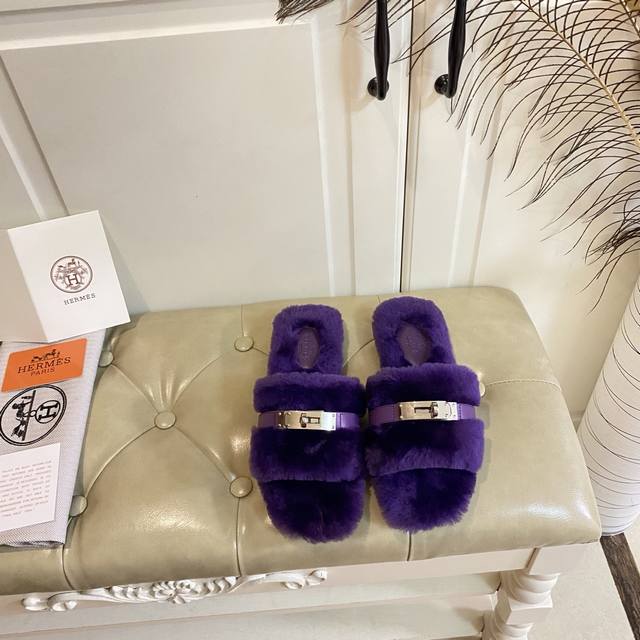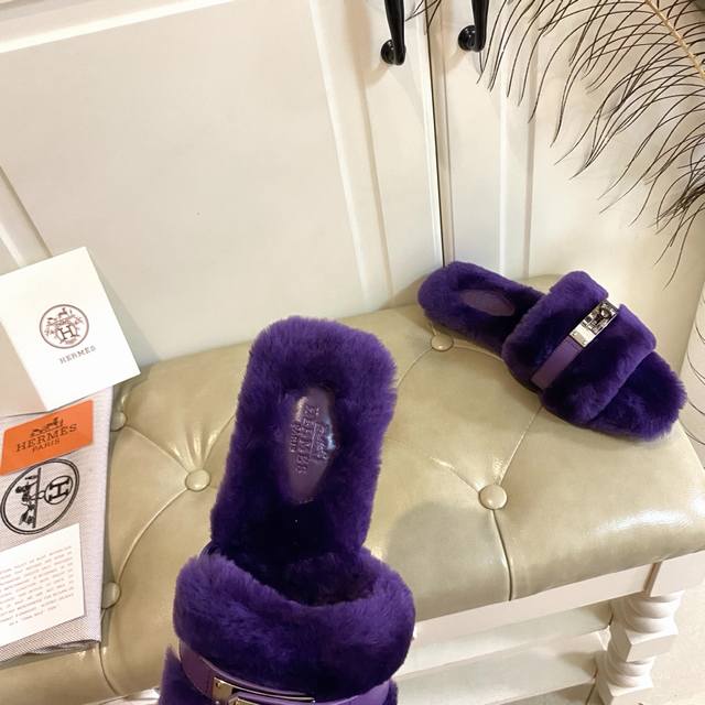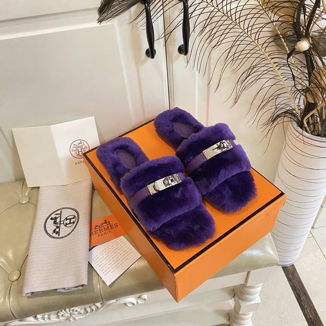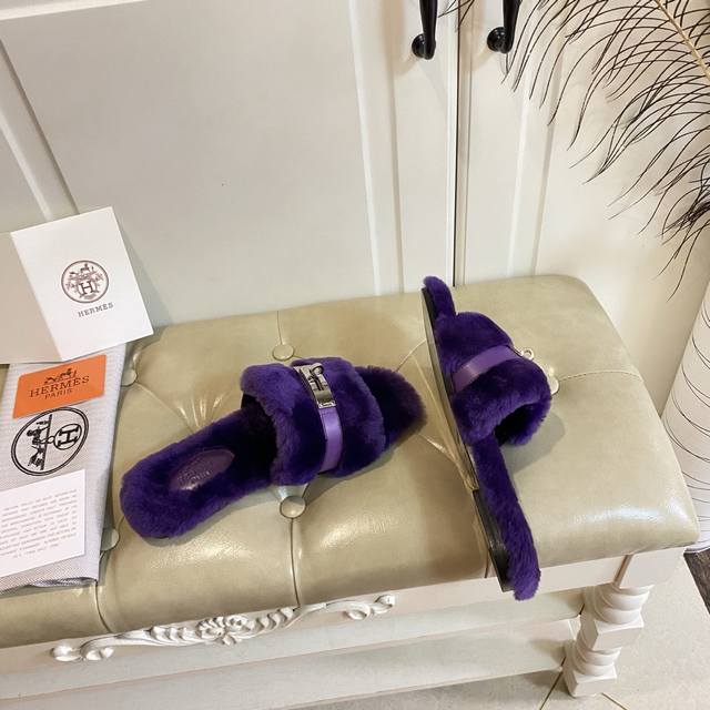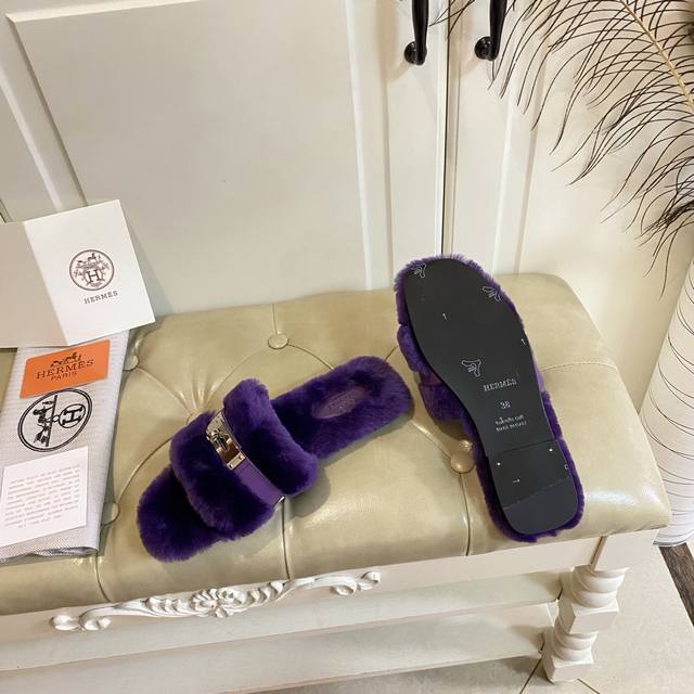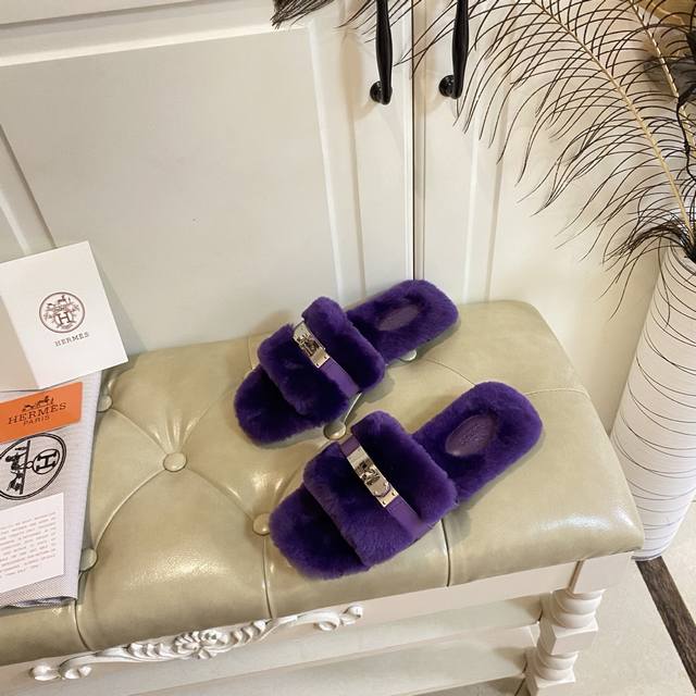 Factory Price (P), New Hermes Fleece Slippers, a top-selling style in internet cafes, top quality, cowhide and sheepskin upper, sheepskin lining, sheepskin insole, genuine leather outsole, sizes 35-40, sizes 41 and 42 are custom-made and non-refundable. Purchase with caution.