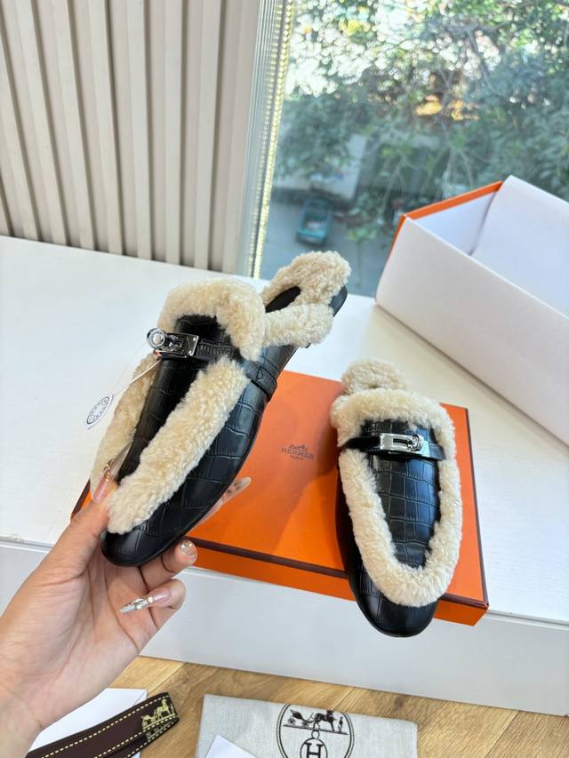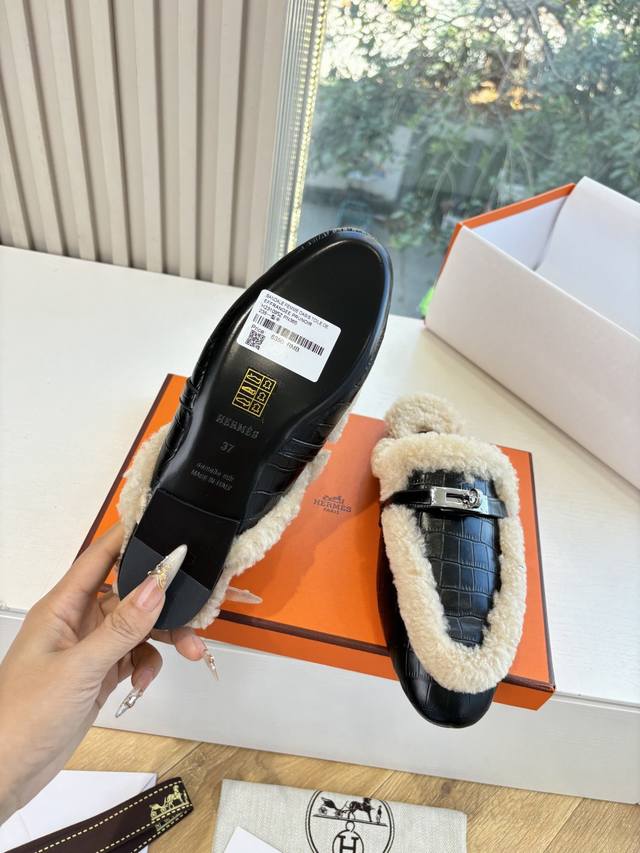 G203 Top-grade *Hermes Teddy Bear Fur Toe Sandals with Shearling and Curled Fur This year's materials are all A+ shearling and curled fur. Super cute and fluffy, feels like walking on clouds. Wear them barefoot or with socks, they're incredibly stylish! Material: Embossed cowhide teddy bear lamb wool. Lining: Imported lamb wool. Sole: Original genuine leather sole. Sizes: 36-39, 40-41. Custom orders, no returns or exchanges.