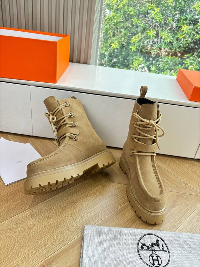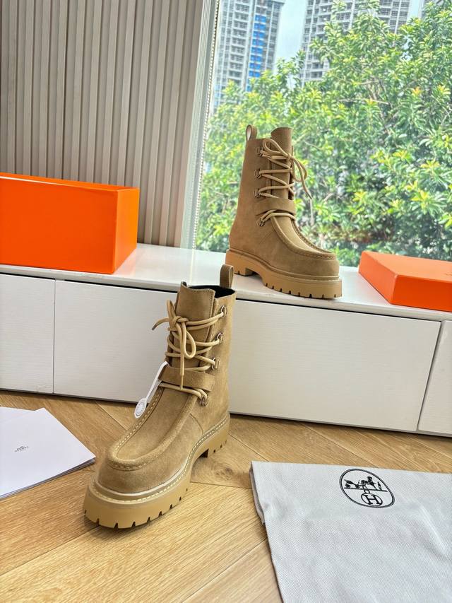 G203 What you see is what you get. Hermes Chelsea boots, 2025 Autumn/Winter new style. Classic Hermes boots, retail price close to 20,000 RMB. The high price naturally reflects unique craftsmanship and quality. All the leather in these boots is imported and custom-made, and the lining is also imported custom-made cowhide. Comfortable and easy to wear, they look good with anything, a must-have for autumn and winter. And the style is timeless; these riding boots will never go out of fashion. Upper: Imported suede cowhide Lining: Imported cowhide lining Outsole: Original sole Sizes: 35-39, 40, 41. No returns or exchanges.