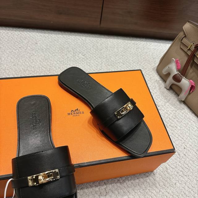 Gold buckle factory price p Hermes Giulia sandal series is fashionable and versatile, super comfortable, and every detail is exquisitely crafted. Exclusive mold, pure steel Kelly buckle hardware, original Swift calfskin original 1:1 exclusive private mold upper, original leather welt and outsole