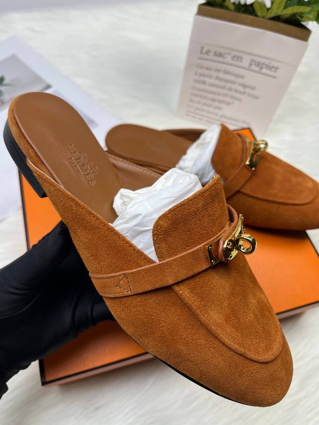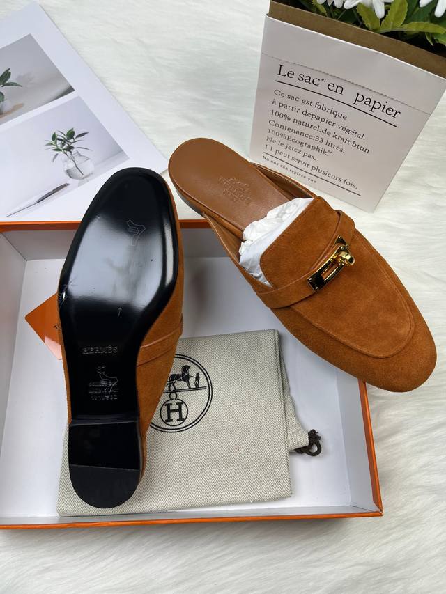 Men's size +10 Hermes Hermes H Chypre series Kelly buckle second uncle slippers