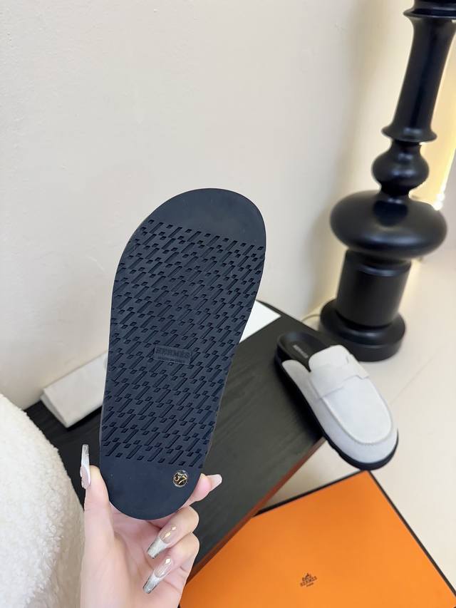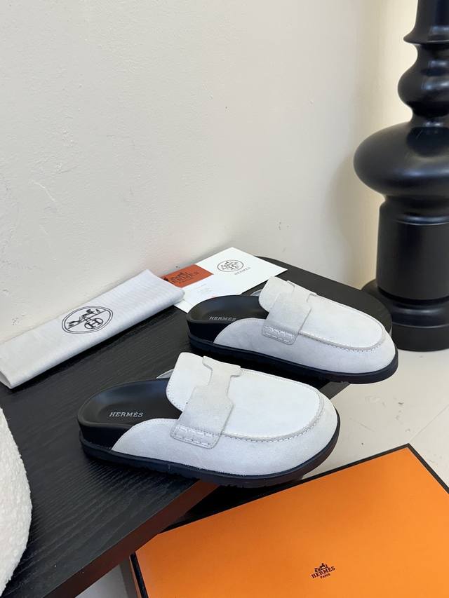 Herme* Herme's adorable mule Birkenstocks are a must-have for summer! These versatile slippers look great with everything, exuding a casual yet sophisticated feel. They're also incredibly comfortable. Pair them with colorful socks for a super trendy look! Made with imported cowhide and sheepskin lining, TPU non-slip and wear-resistant outsole. Size: #35-40. Size 40 is custom-made and non-refundable.