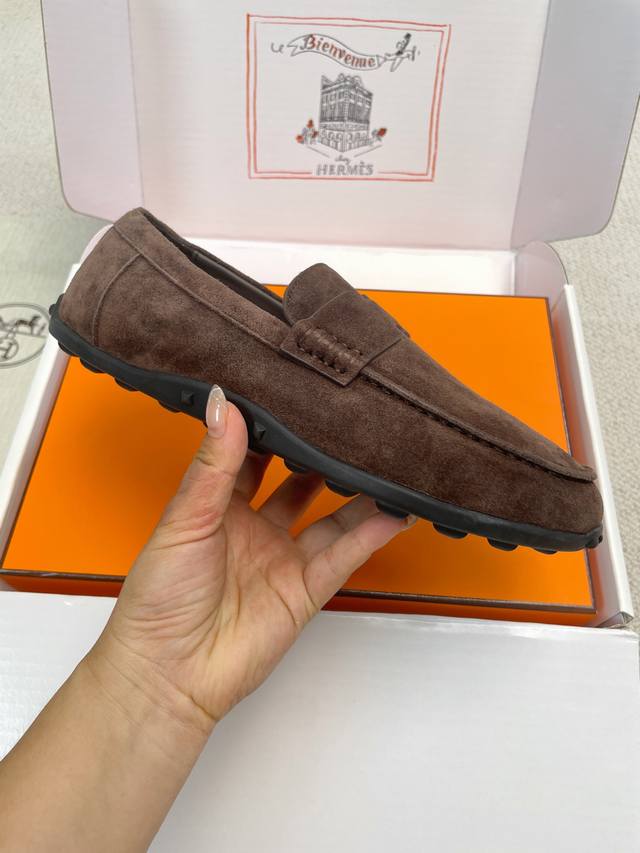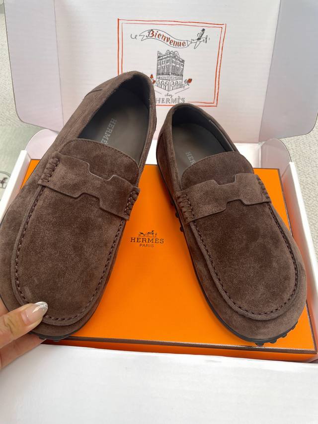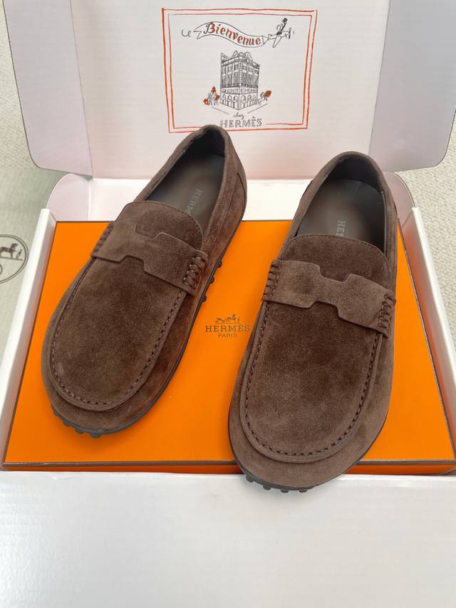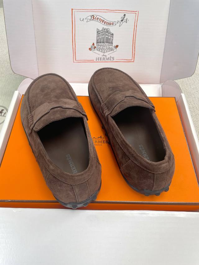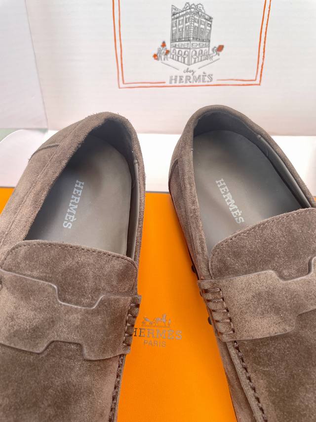Hermes 2025 Spring/Summer New Lazy Toe Women's Shoes H-House Flat Round Toe Fashion Casual Loafers