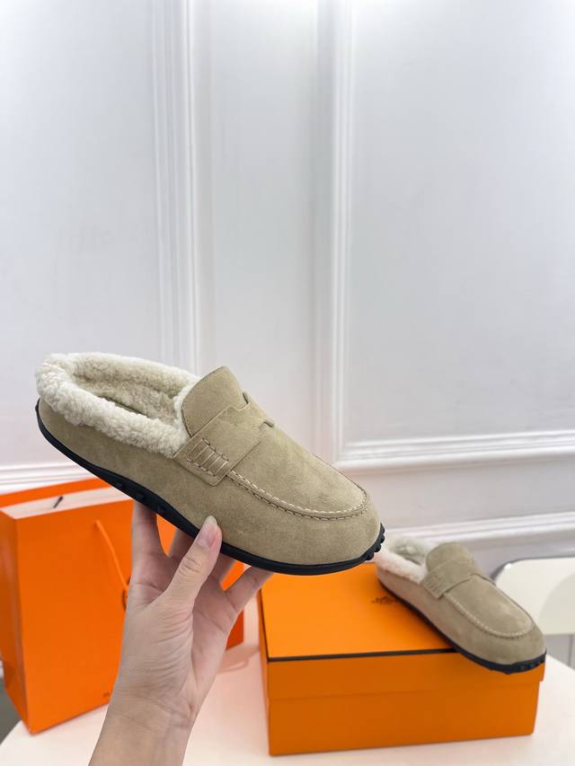 Hermes 25 DDD 2025 Autumn New Arrival Classic Lazy Casual Wool Loafers Half-Slippers Series DDD Upper: Original Specific Cow Suede DDD Lining: Imported Wool Lining DDD Outsole: Original Mold Customized Non-Slip Outsole DDD Heel Height: Flat DDD Shoe Sizes: 35-39, 40, 41 Made to order, no returns or exchanges DDD Factory Price (pp.): DDD