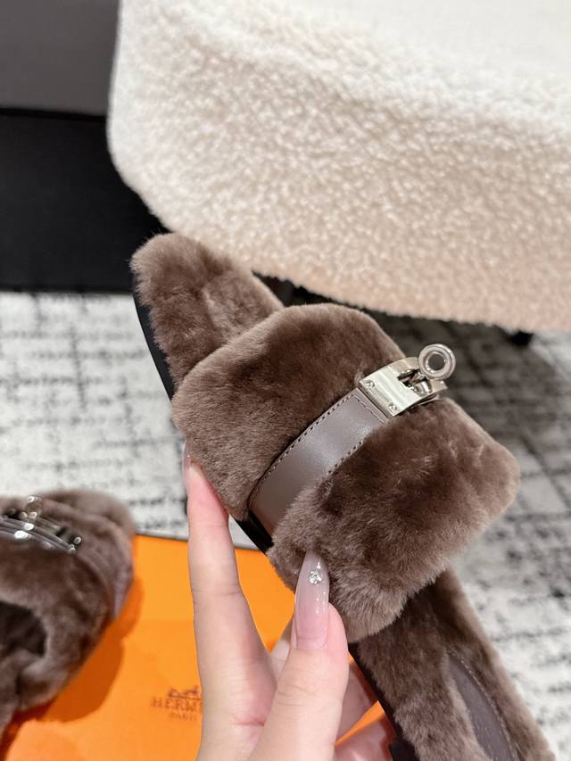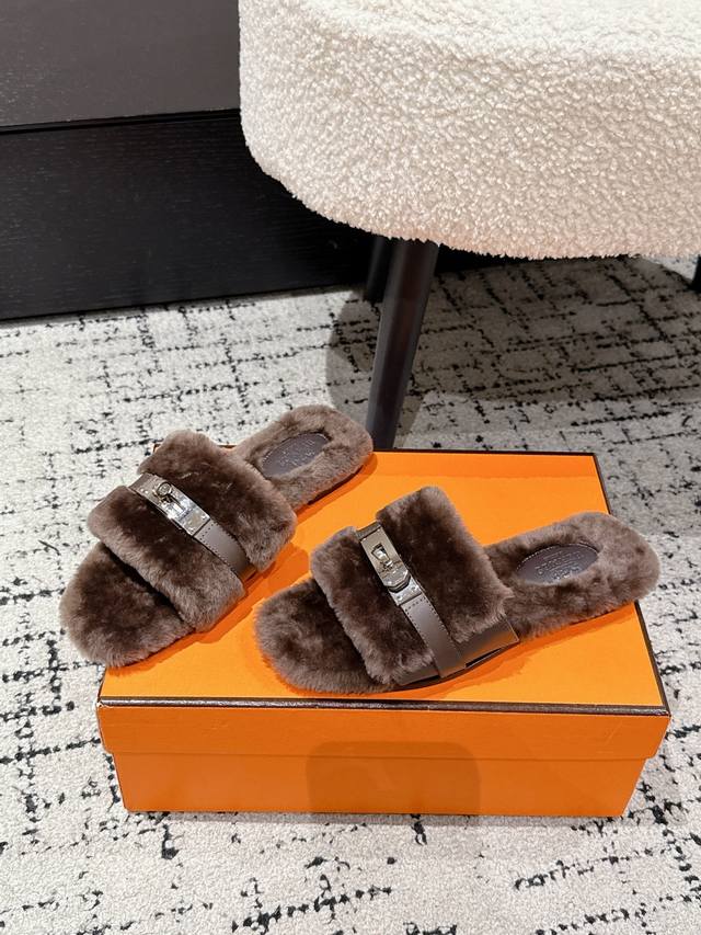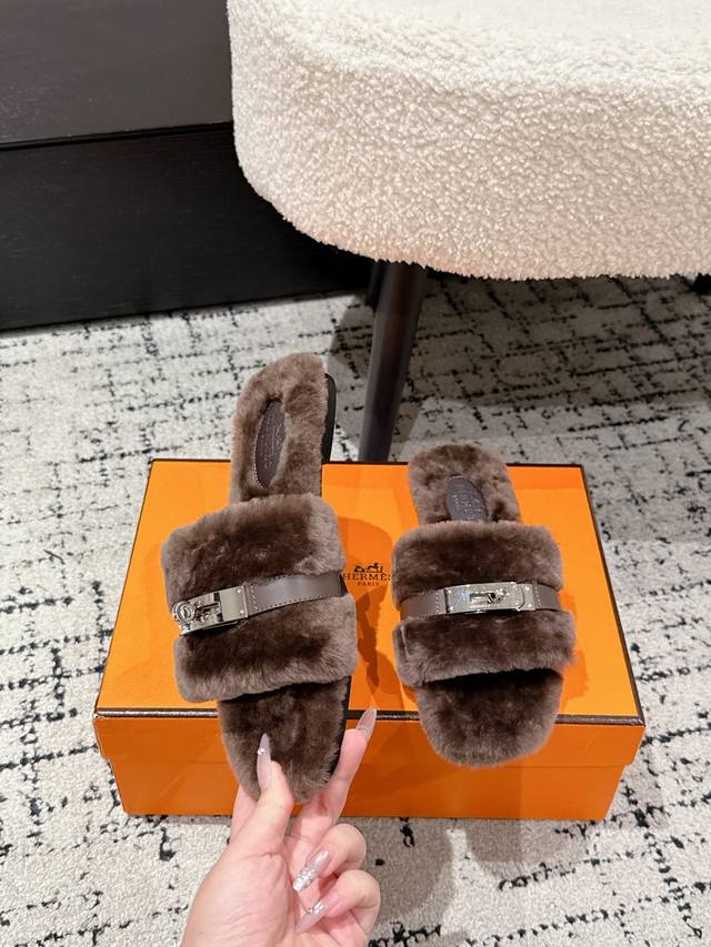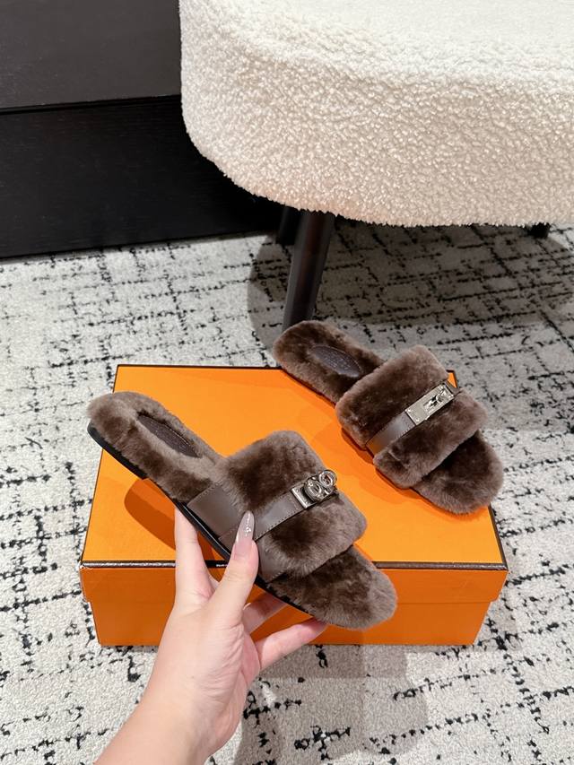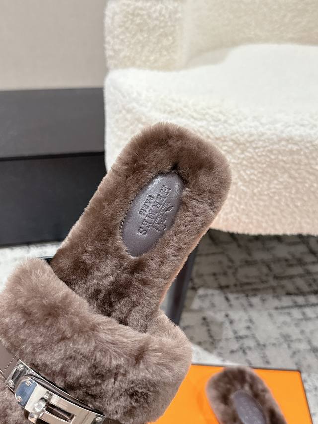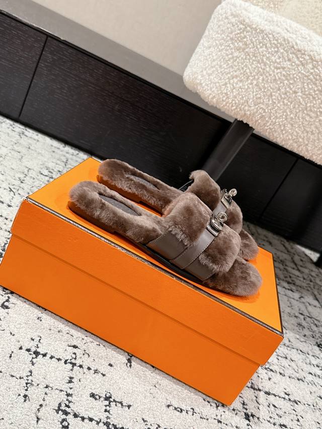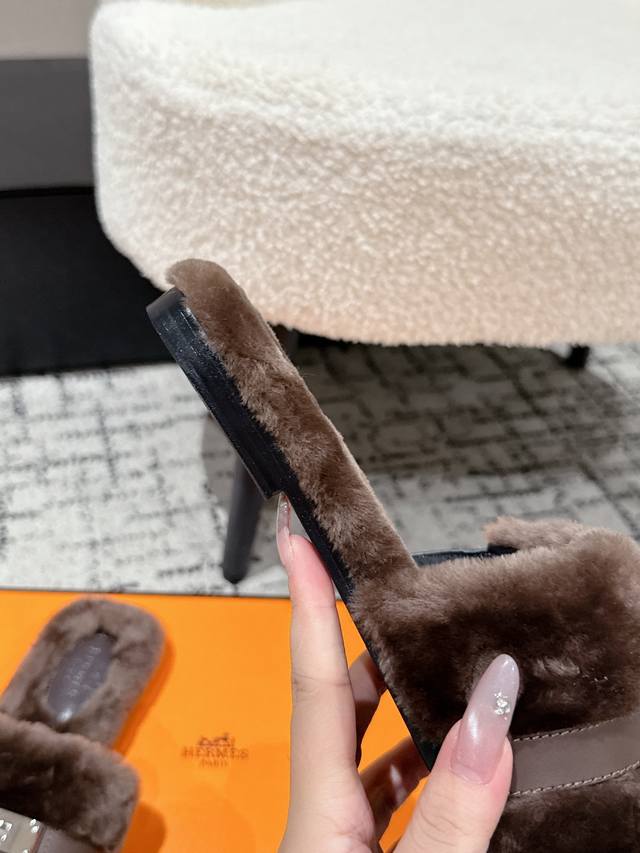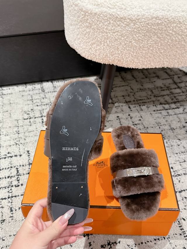 Hermes 25 Latest Autumn/Winter Shearling Rolled Fleece Slippers DDD This year's materials are all made of lamb's wool, fluffy and super cute, feels like walking on clouds, looks incredibly stylish whether worn barefoot or with socks DDD Material: Wool DDD Lining: Imported lamb's wool DDD Sole: Original genuine leather sole DDD Size: #35-42 40, 41, 42 Customized DDD