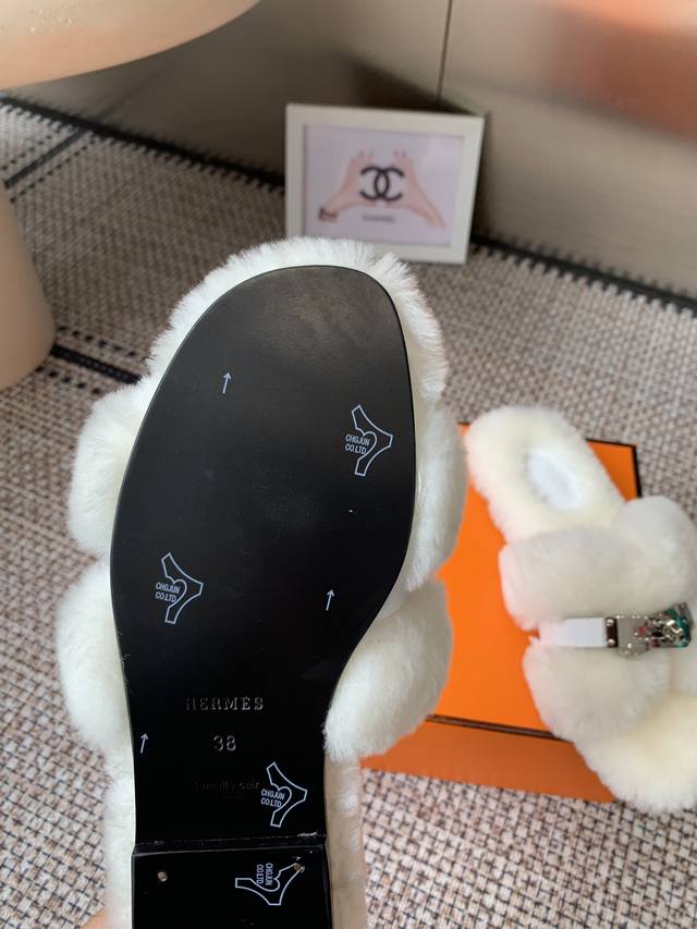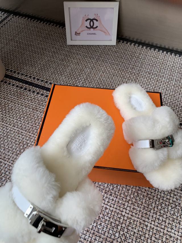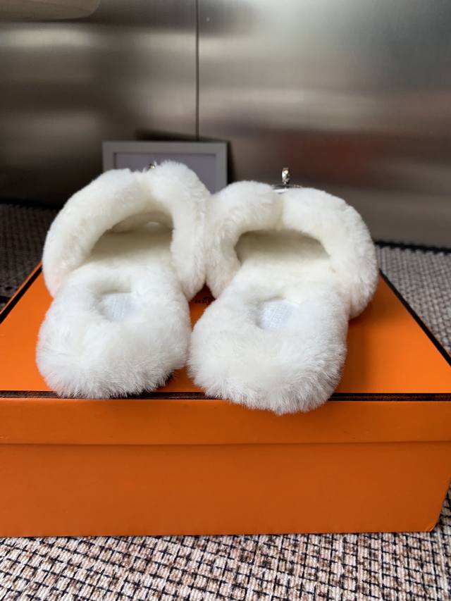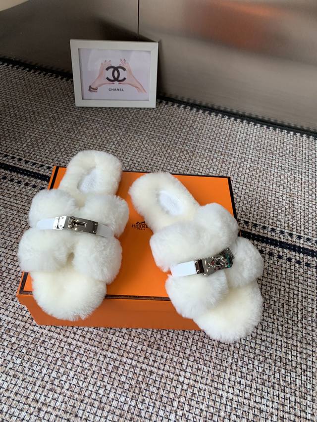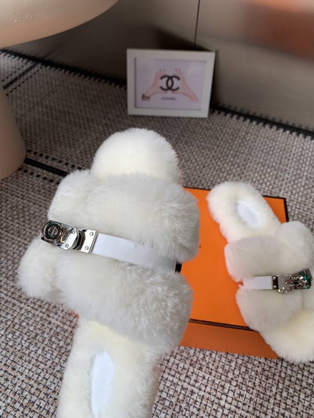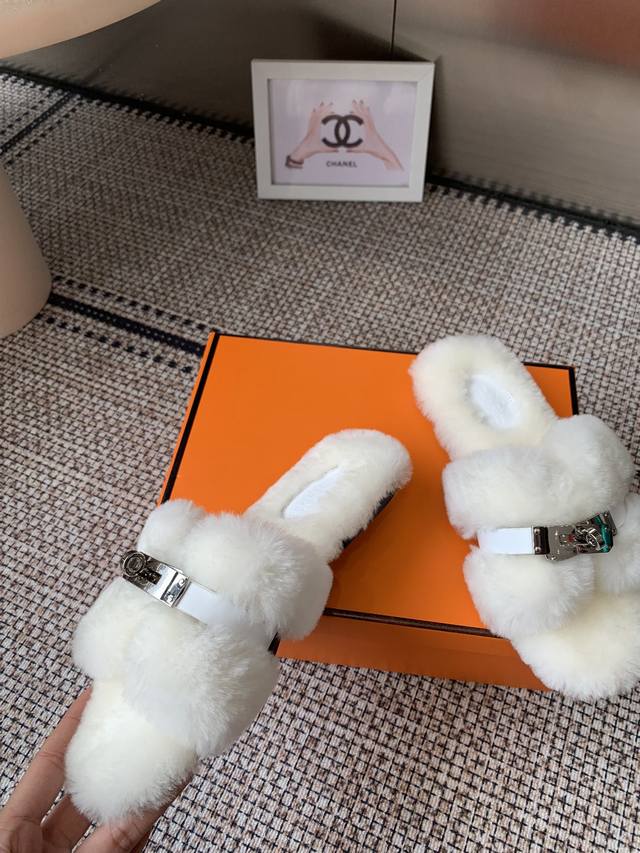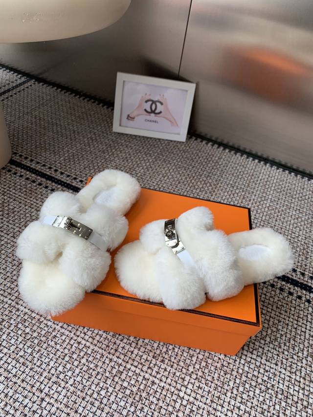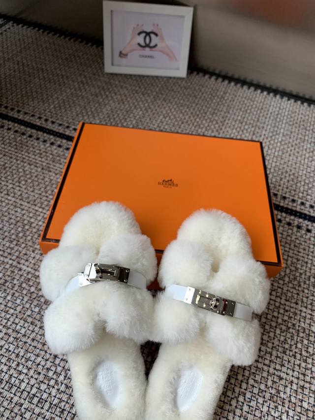 Hermes 25Ss autumn and winter new Teddy wool H-shaped slippers