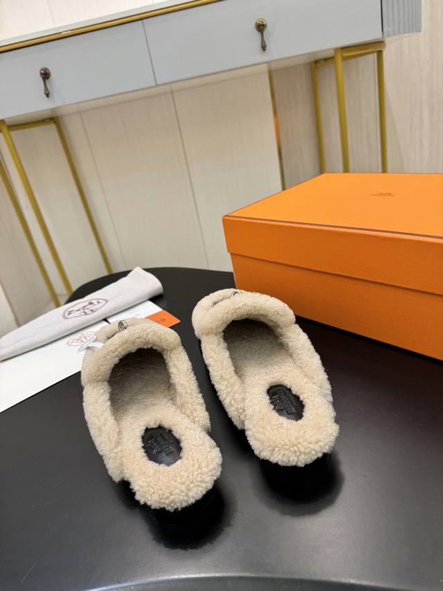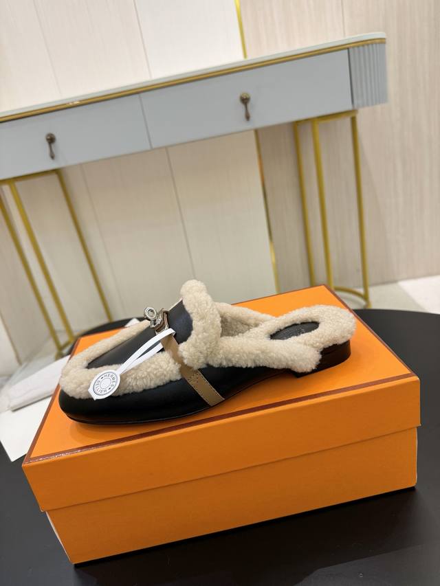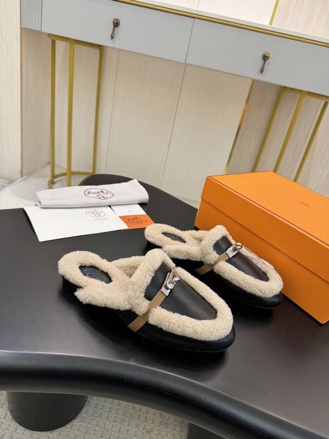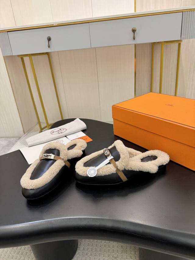 Women's and Men's Hermes 25 New Arrival~ Couple's Mule Slippers H's round-toed