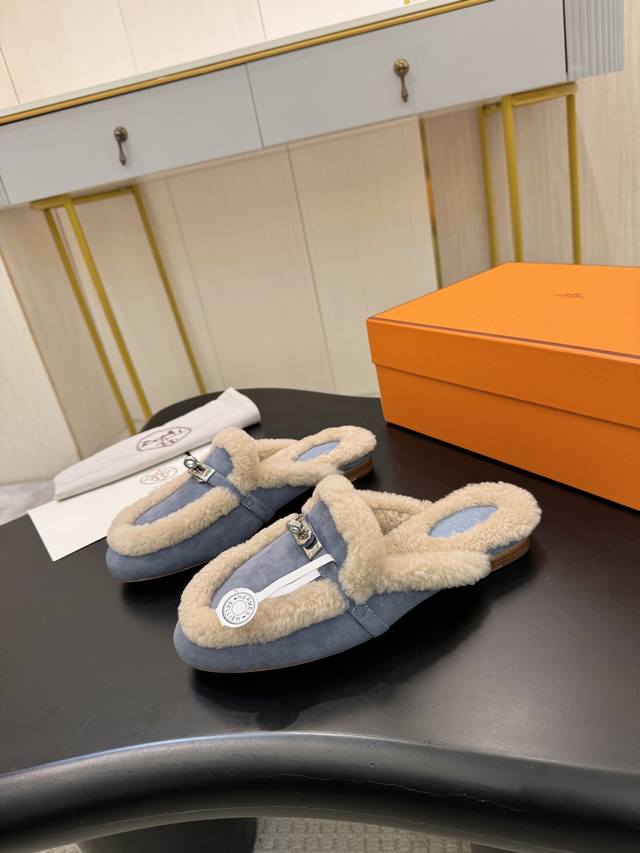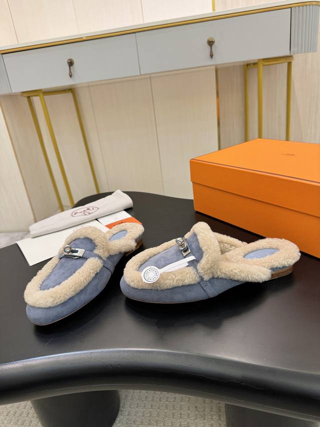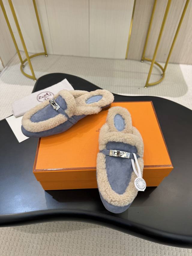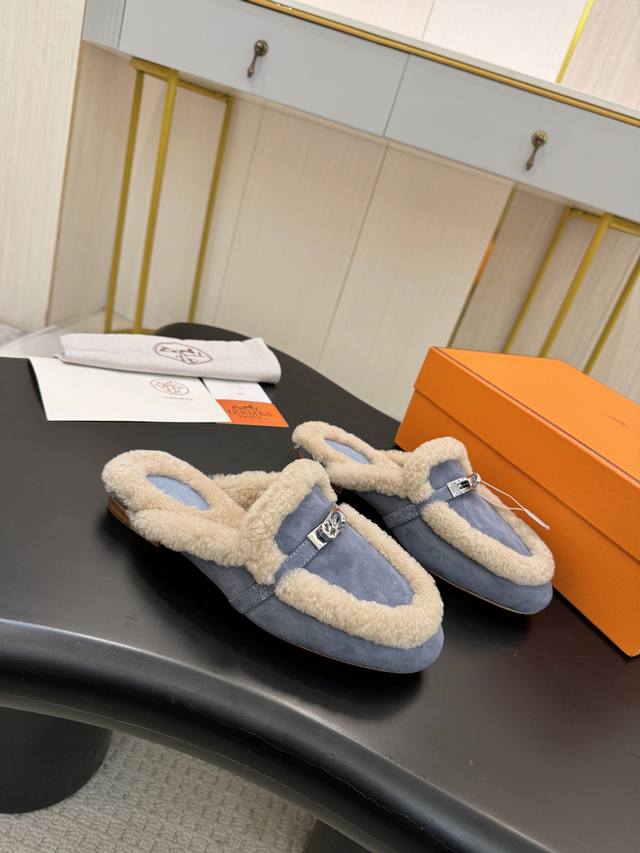 Factory direct price. Hermes Fall/Winter Classic Oran Candy Color Racer Slippers