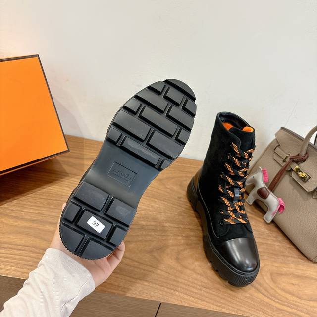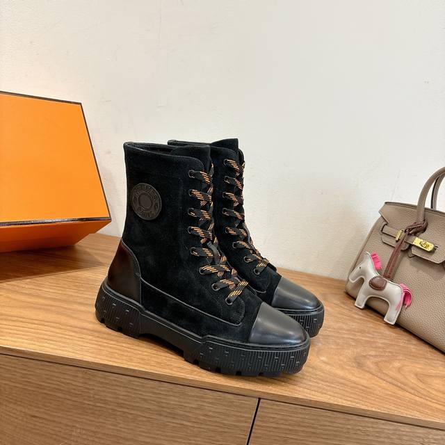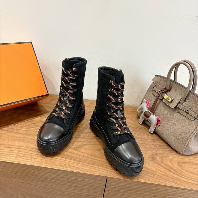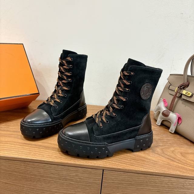 Chanel 25Ss autumn and winter new round toe zipper boots. This thick sole has a