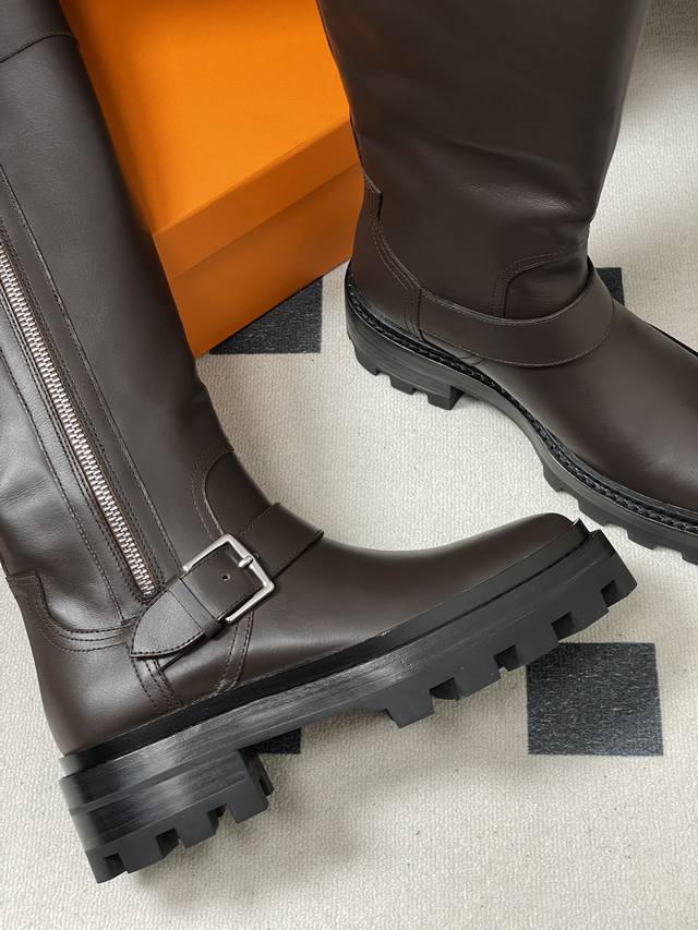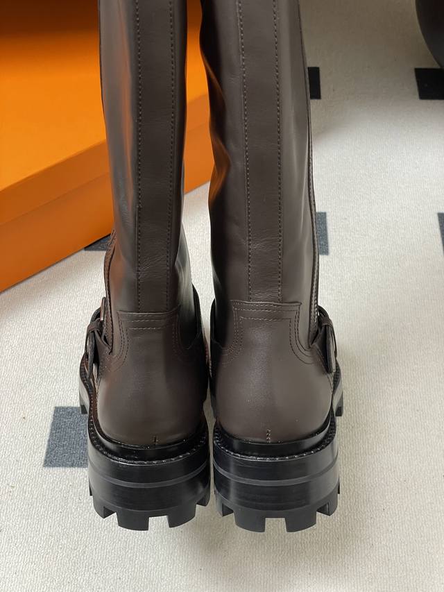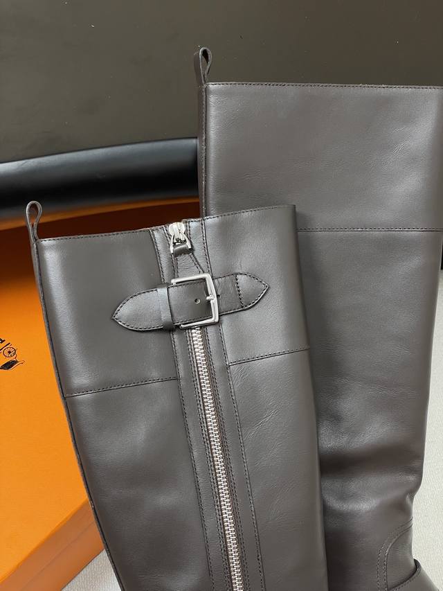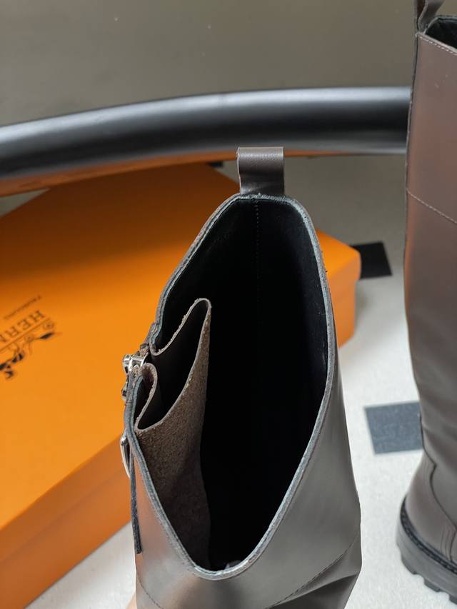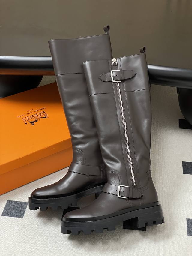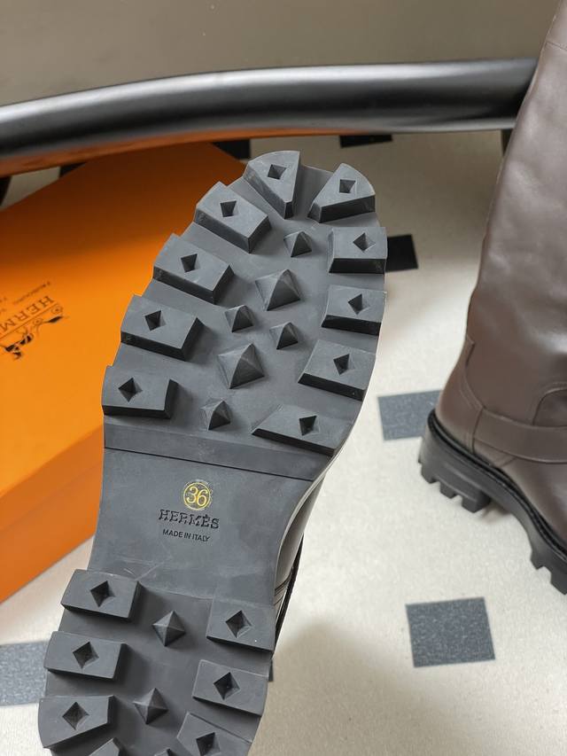Hermes Jaime Long Boots Series Classic Long Boots, Motorcycle Style, Belt Buckle, Riding Boots, Side Zipper, Thick Sole, Straight-Leg Long Boots DDD Classic and Simple! The design style of these boots is usually classic and simple, emphasizing smooth lines and elegant shapes. Without excessive embellishment, they exude a noble and sophisticated quality. This minimalist beauty aligns with the brand's consistent high-end positioning, giving its products a timeless sense of style and ensuring long-lasting popularity. DDD Presenting a classic long-leg style, the smooth and natural lines elegantly wrap around the leg lines, showcasing a slender leg silhouette. They look great with both skirts and trousers. DDD Upper: Custom calfskin DDD Insole: Cowhide DDD Sole: Original mold TPU outsole DDD Sizes: 35-39 40.41 Custom-made, no returns or exchanges DDD
