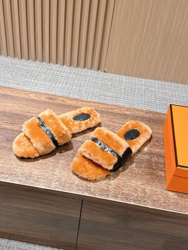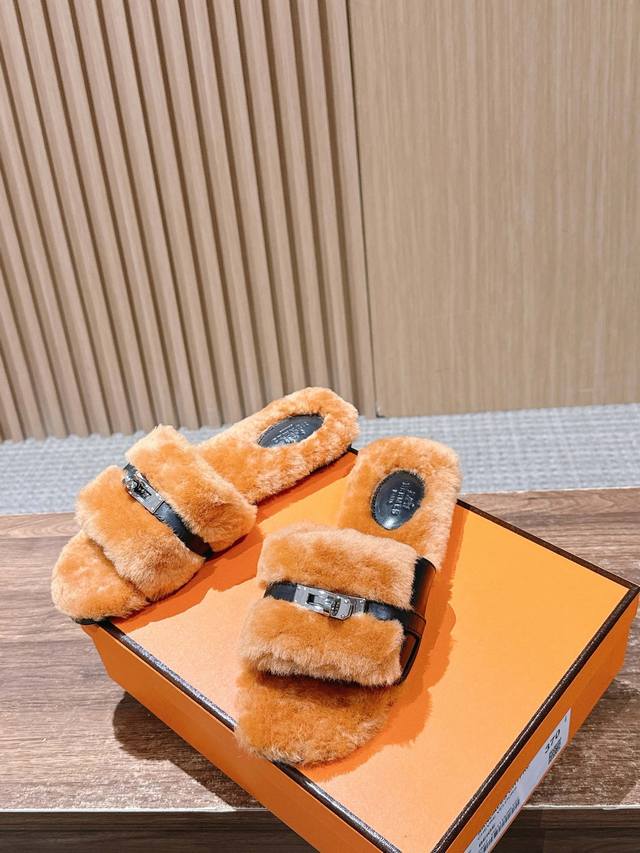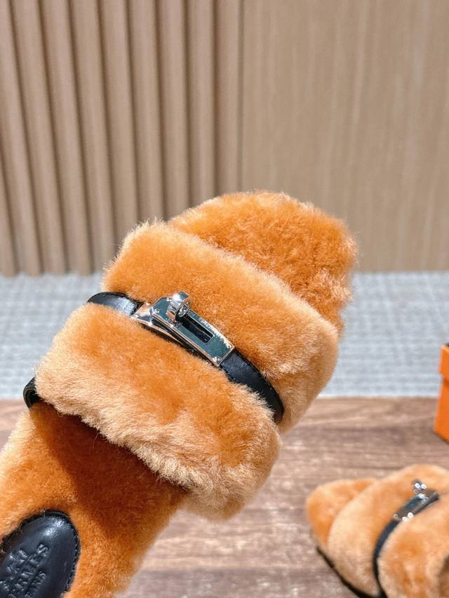 Hermes Kelly buckle new wool slippers are more stylish than the classic H slippers! They're irresistibly tempting at first glance, super chic, fresh, and fashionable