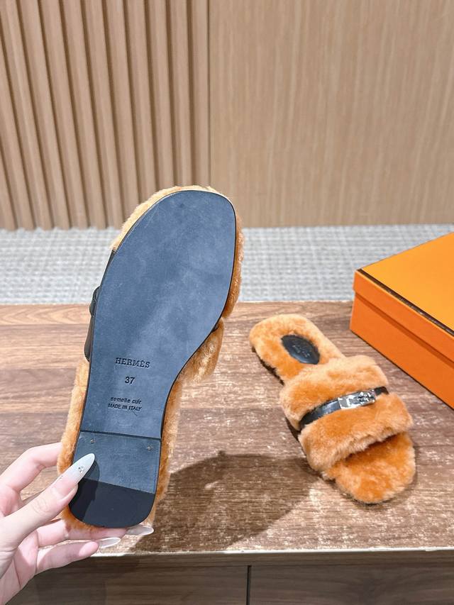 Hermes Kelly buckle new wool slippers are more stylish than the classic H slipp