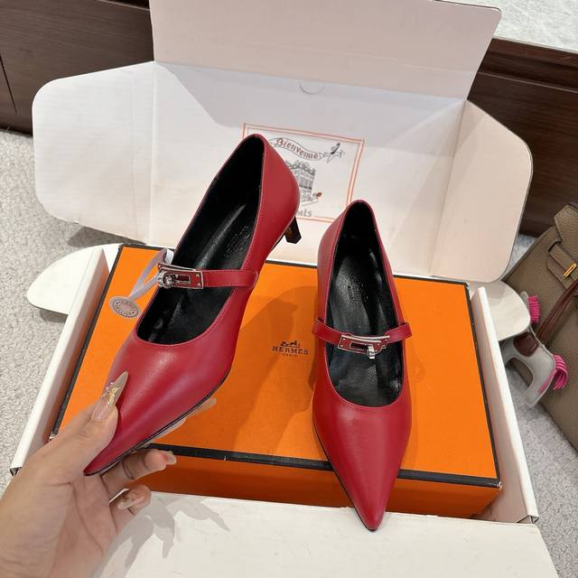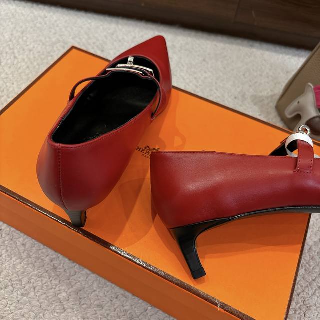 Hermes Kiara 40 high heels, factory price. 1:1 replica of the original design, disassembled and made with a unique last by a master craftsman. Original mold, pure steel Kelly buckle, stylish and versatile, super comfortable to wear. Every detail is meticulously crafted. Original calfskin lining, mixed sheepskin, Italian genuine leather outsole. Sizes: 35~41. Custom orders are non-refundable and non-exchangeable.