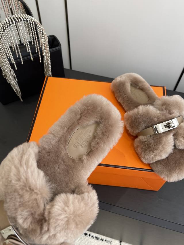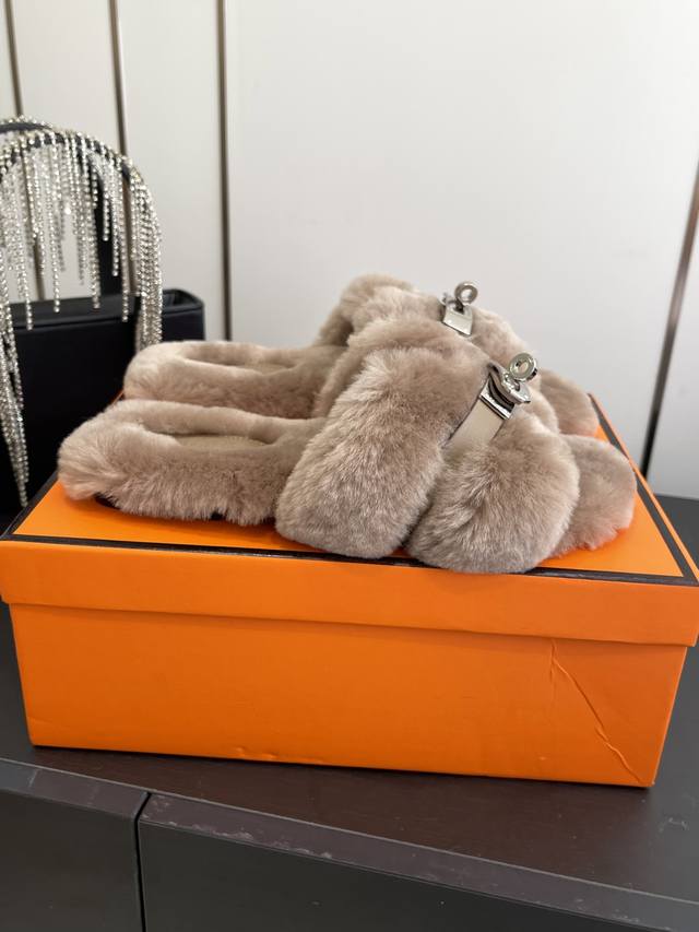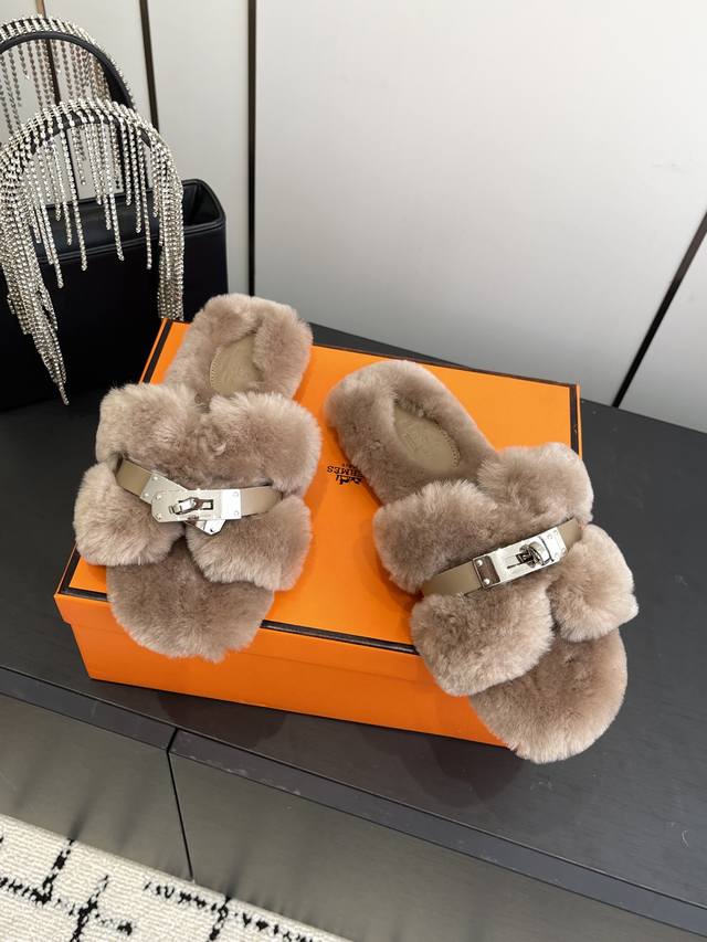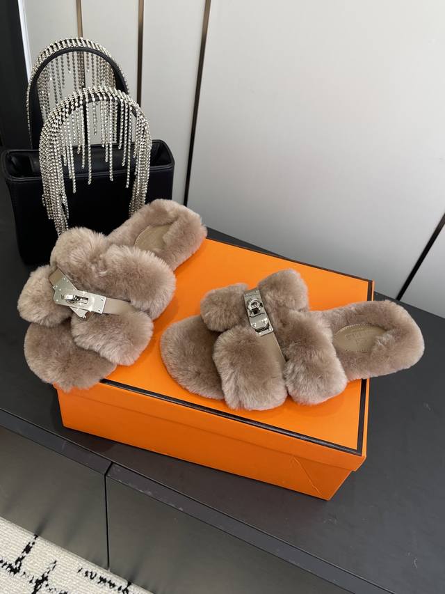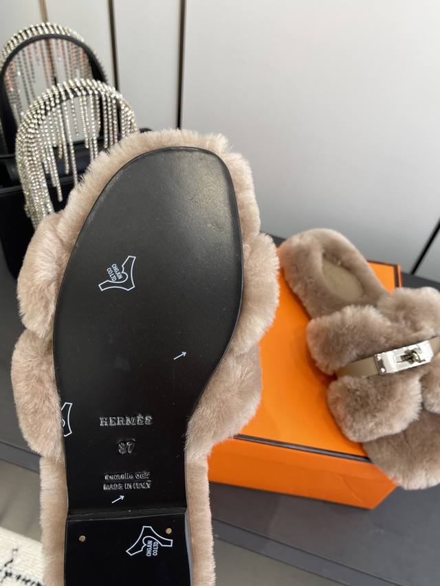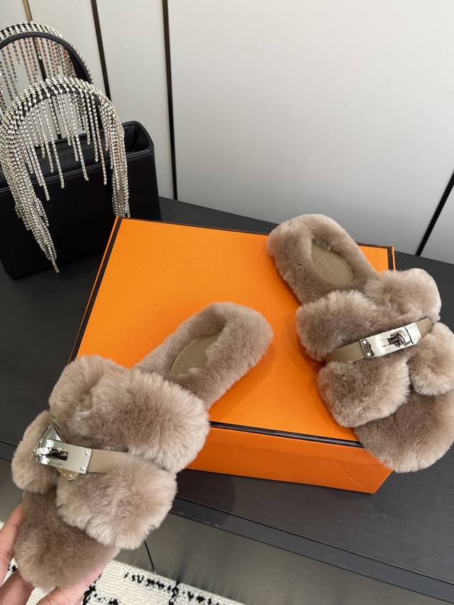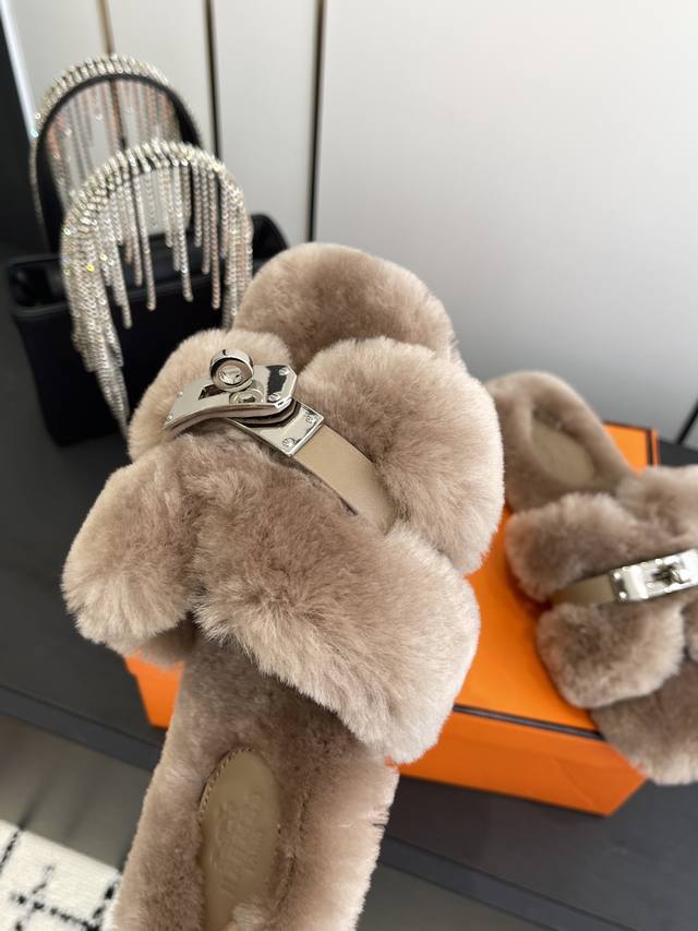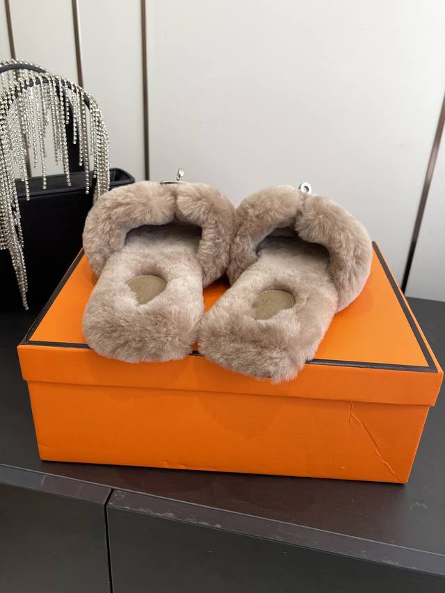 Fashionable and trendy latest Teddy wool H-slippers autumn and winter flat slippers, super versatile and warm sole, a favorite of ladies