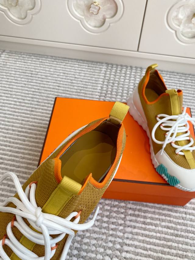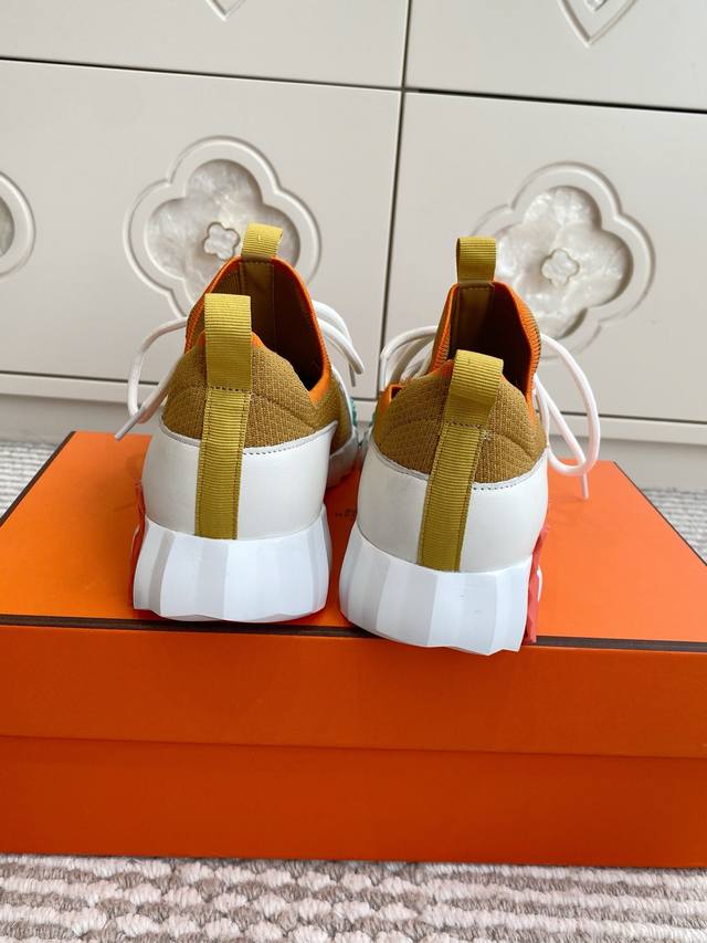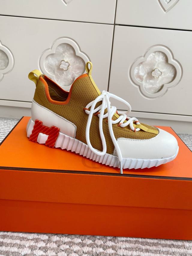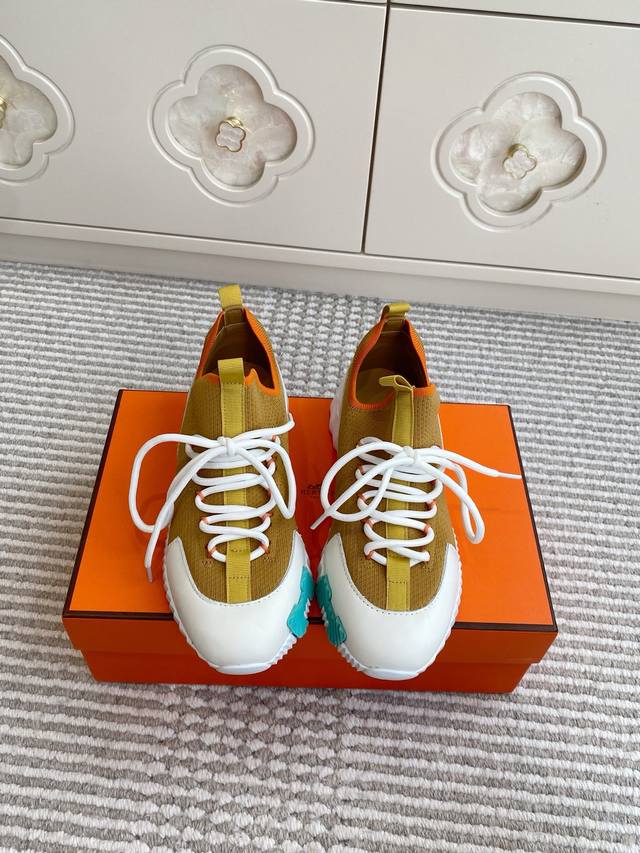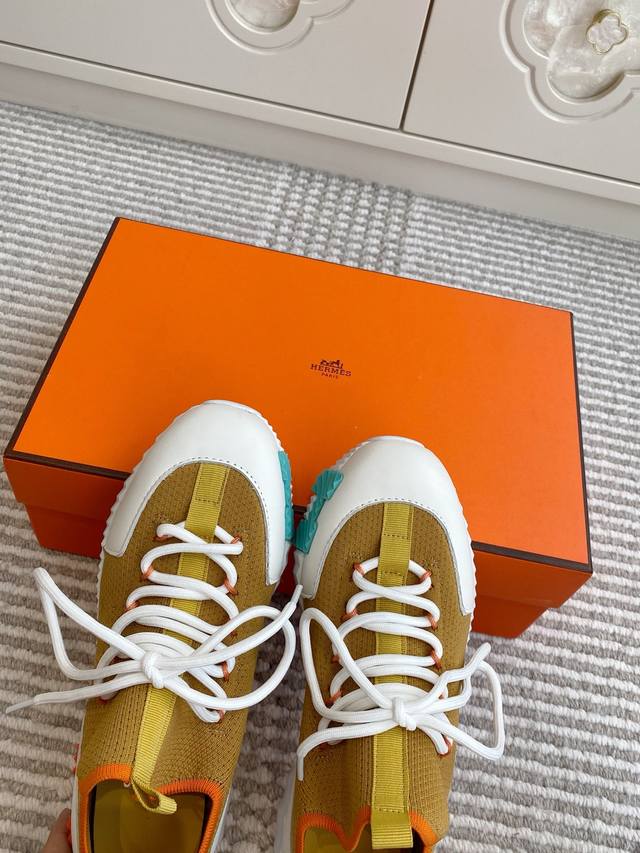 Hermes Official Website Bouuncing Couple Style H-Lace Platform Sneakers DDD Top Quality DDD Exquisite Craftsmanship, New Arrival Synchronized with Boutiques. Every detail of the shoes is meticulously crafted, making them quite eye-catching. Elegant patchwork elements highlight their refined temperament! The fashionable flyknit lace-up design adds a casual touch, while the exquisite lines subtly showcase the brand's design language. The delicate lines perfectly fit the foot shape, naturally outlining a fashionable silhouette and achieving a visually striking effect, fully embodying a unique sporty style! DDD Upholstery: Imported high-gloss cashmere rain fabric, flyknit cowhide lining, breathable mesh fabric, mixed sheepskin insole for comfortable wear, Ip TPU outsole, seamless combination using German technology, lightweight, high elasticity, slip-resistant, and wear-resistant! Original Box Packaging DDD Size: 35-45 Women's 41 Men's 46 Custom Made DDD