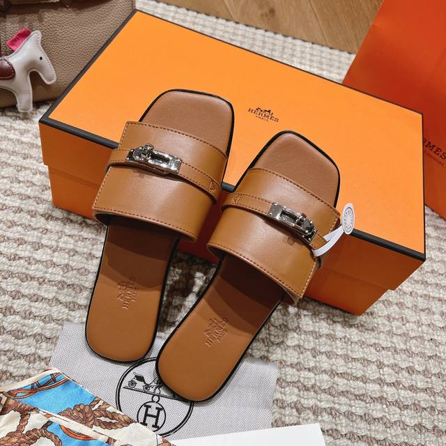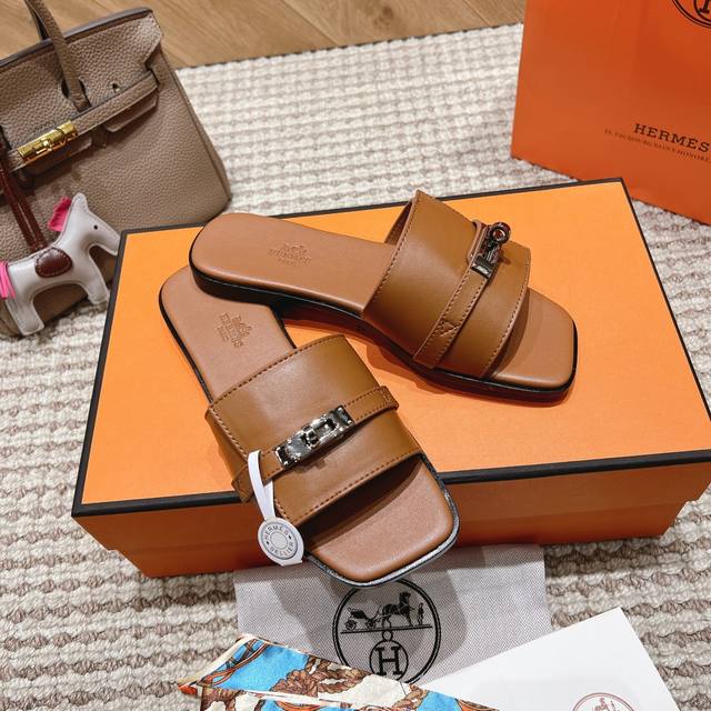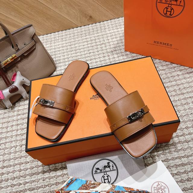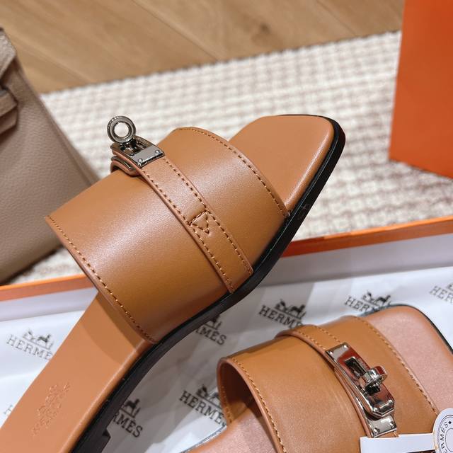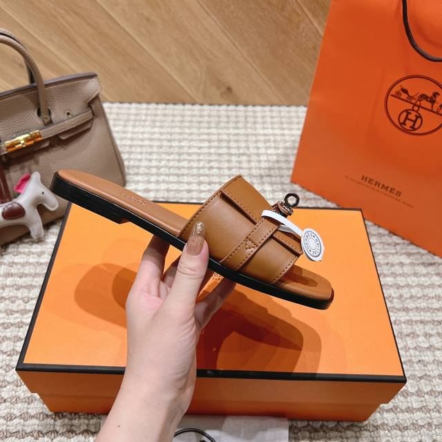 Hermes official website latest color scheme: Women's: Black, white, brown, green, pink. Six colors *Sizes: 35-40, all sizes 41 and 42. Custom orders are non-refundable and non-exchangeable. Upper material: Classic plain calfskin. Sole material: Zero-crack genuine leather outsole. Hermes' most eye-catching classic color Gigi sandals for summer, paired with the classic palladium-plated Kelly buckle, simple and smooth design, creating a fashionable and feminine look. They look amazing on!
