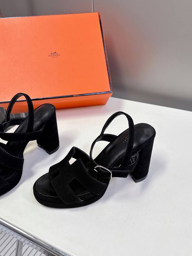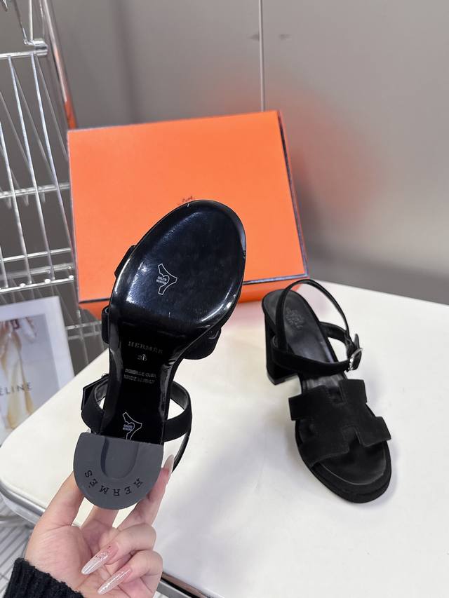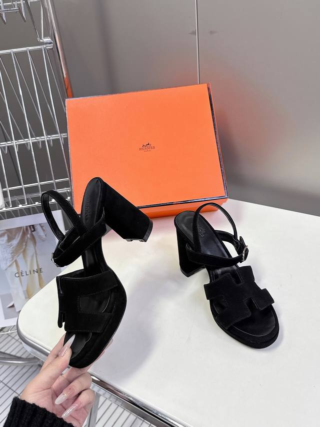 Hermes Spring/Summer New High-Heeled Sandals DDD Upper: Imported top-grain suede cowhide, mixed lambskin insole, original genuine leather outsole. You get what you pay for; high-quality materials, from leather and last to sole and craftsmanship, everything is identical to the original. DDD Suede high-heeled sandals, classic "H" shaped upper paired with a flexible ankle strap to accentuate slender ankles, approximately 9cm heel to reshape the figure, genuine leather sole to enhance style, simple and smooth design to create a fashionable and feminine look. DDD Size: 35-39, size 40 can be customized, no returns or exchanges. DDD Colors: Multiple colors. DDD Heel height: Approx. 9cm heel, approx. 2cm platform. DDD