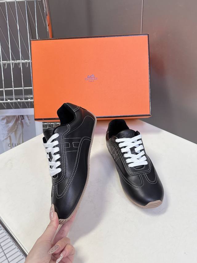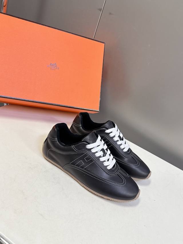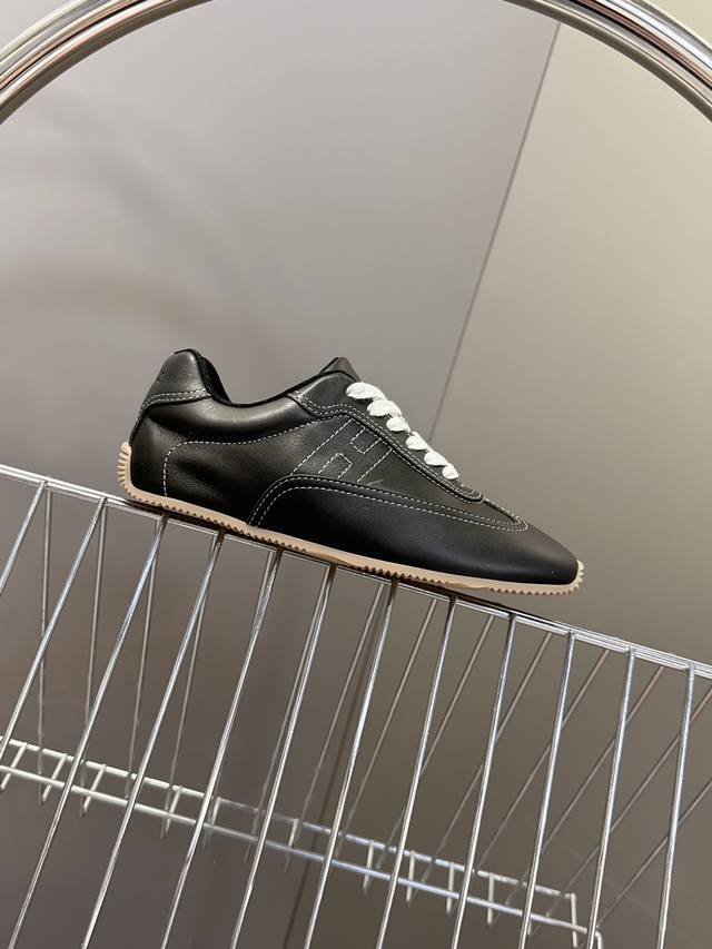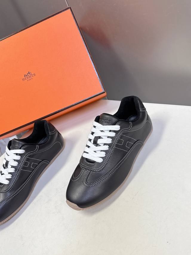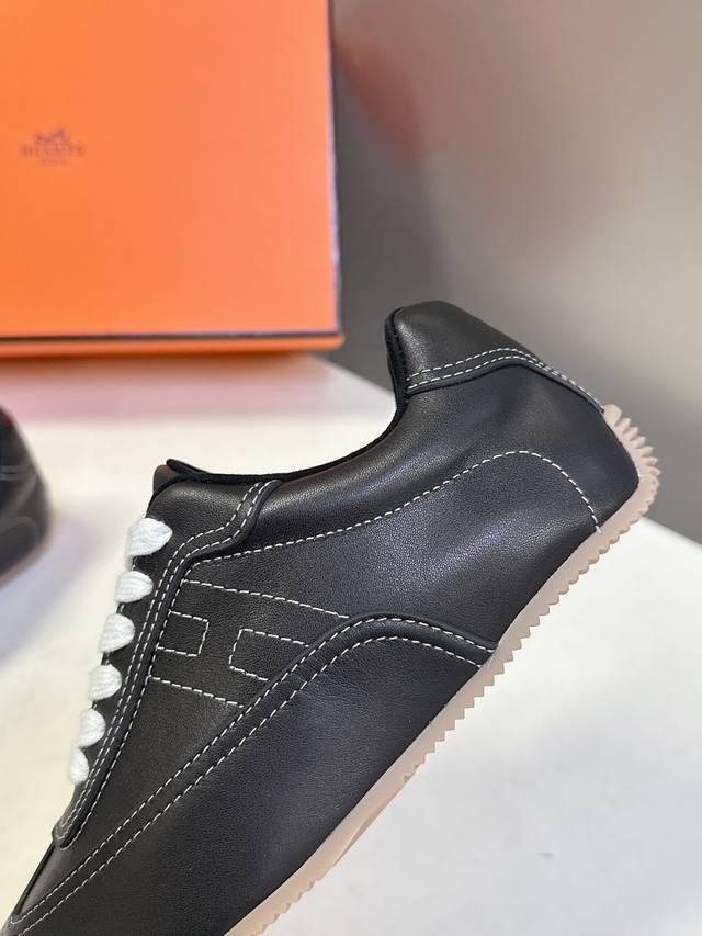 Hermes Spring/Summer Newest German Training Shoes Casual Shoes Ddd Highly recommended by celebrities and influencers, extremely difficult to find in stores. Features an "H-shaped" perforated design with clean lines, presenting a fashionable urban and neo-retro style. The minimalist design aligns with current old-money trends. The highly recognizable logo adds a touch of brand value. A super versatile shoe. Imported calfskin upper, mixed sheepskin lining, original mold, rubber outsole. Size: Women's 35-40 DDD
