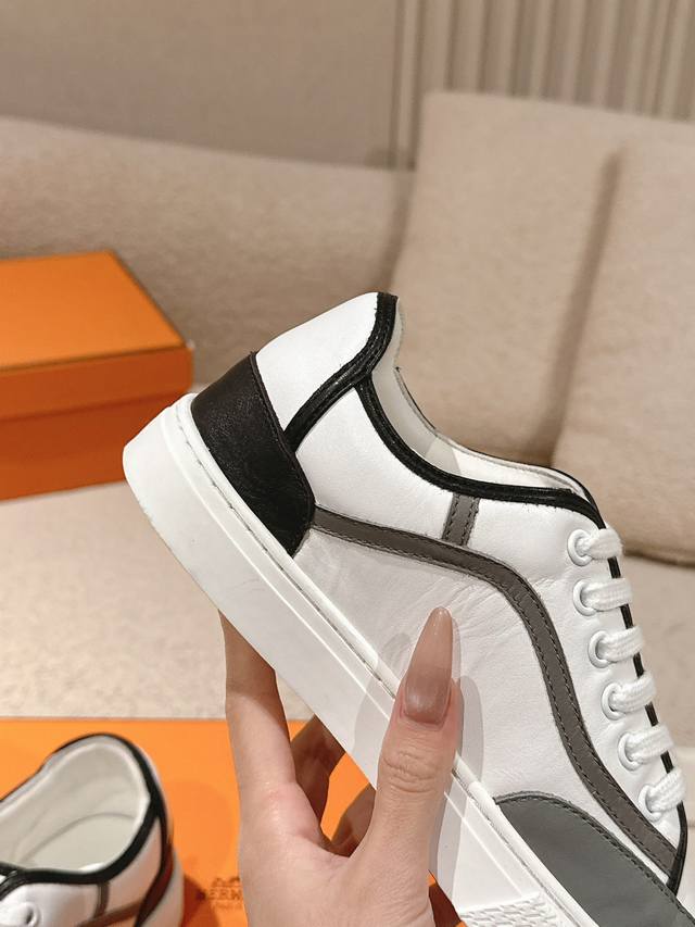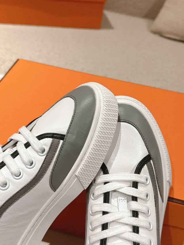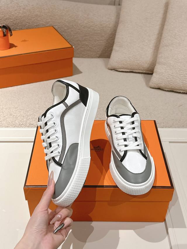 Hermes Top-Tier Version# Hermes Deep Series Couple White Sneakers Casual Skate S