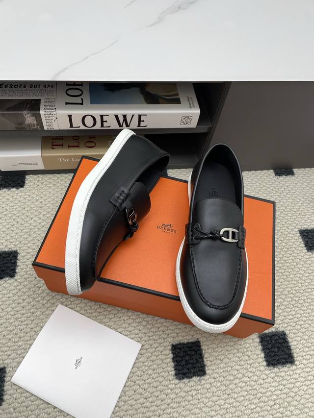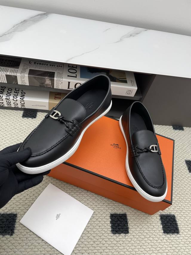Hermes.H men's autumn and winter loafers.