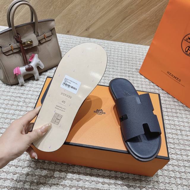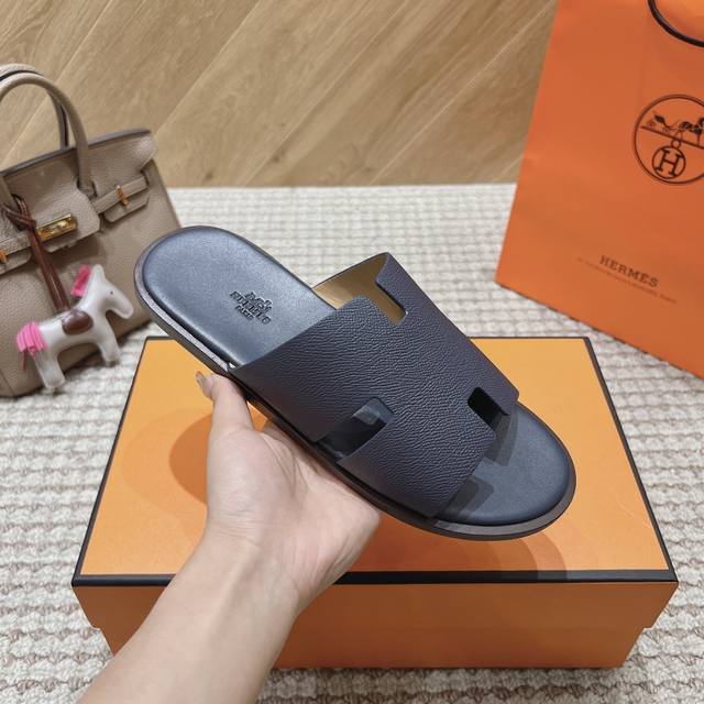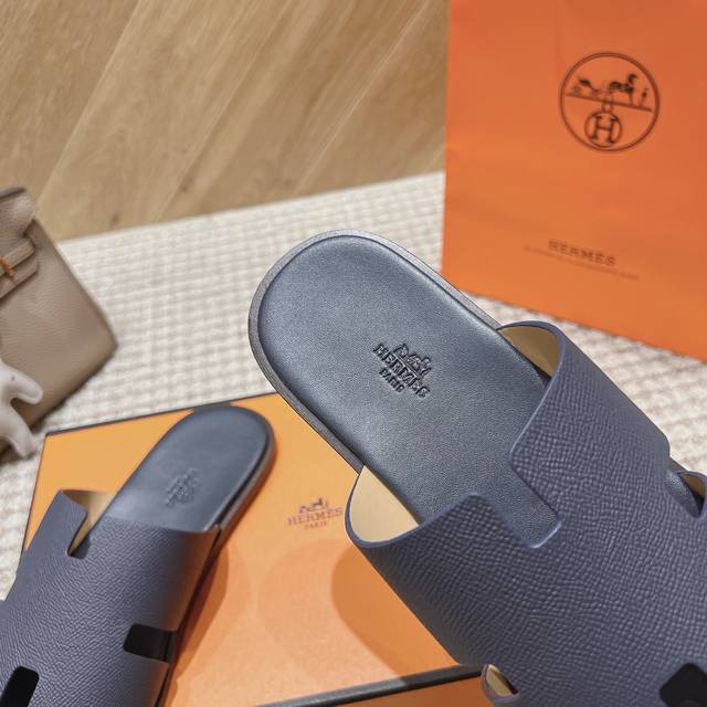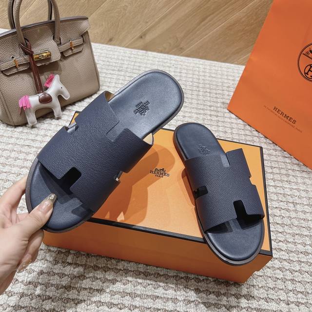Hernes deep blue palm print Hermes genuine leather upper, lambskin lining, high-end H men's slippers, Italian wear-resistant genuine leather sole, urgently needed in the market: exquisitely handcrafted. Original replica, sizes: 39-46, 38, 39, 45, 46 custom orders are non-refundable and non-exchangeable. Full packaging, genuine leather sole.