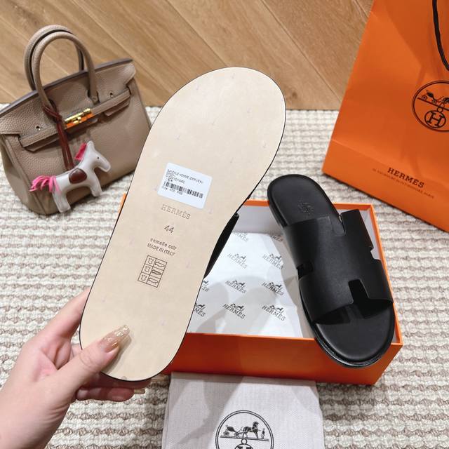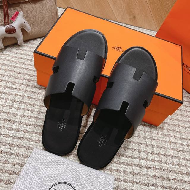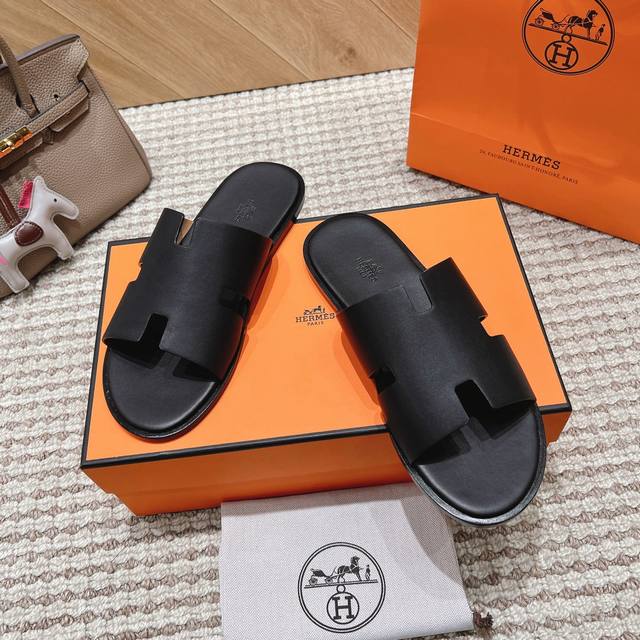 Hernes genuine leather upper, lambskin lining, high-end H men's slippers with durable rubber outsole, urgently needed in the market: exquisitely handcrafted. Original replica, sizes: 39-45, 38, 39, 45, 46. Custom orders are non-refundable and non-exchangeable. Full packaging. Rubber outsole, genuine leather outsole. 230 DDD