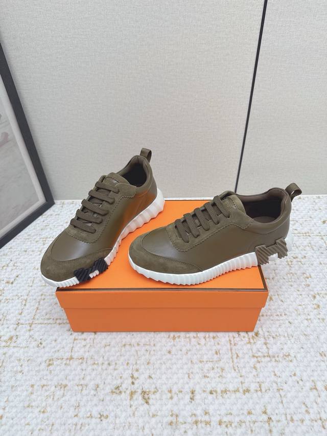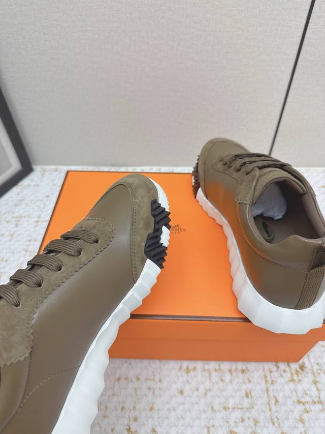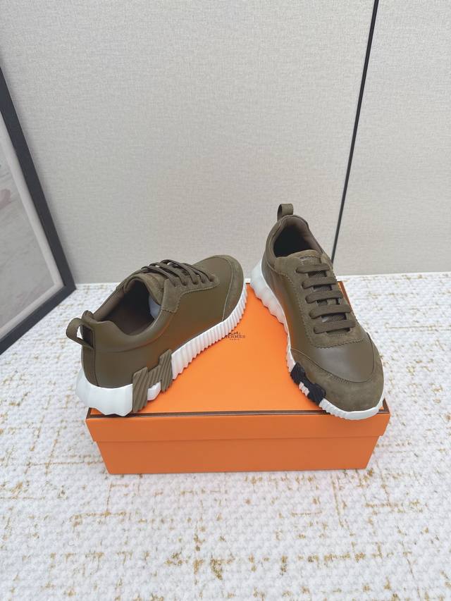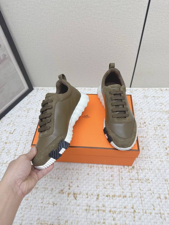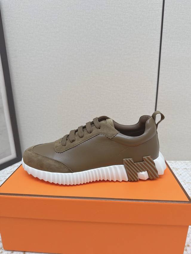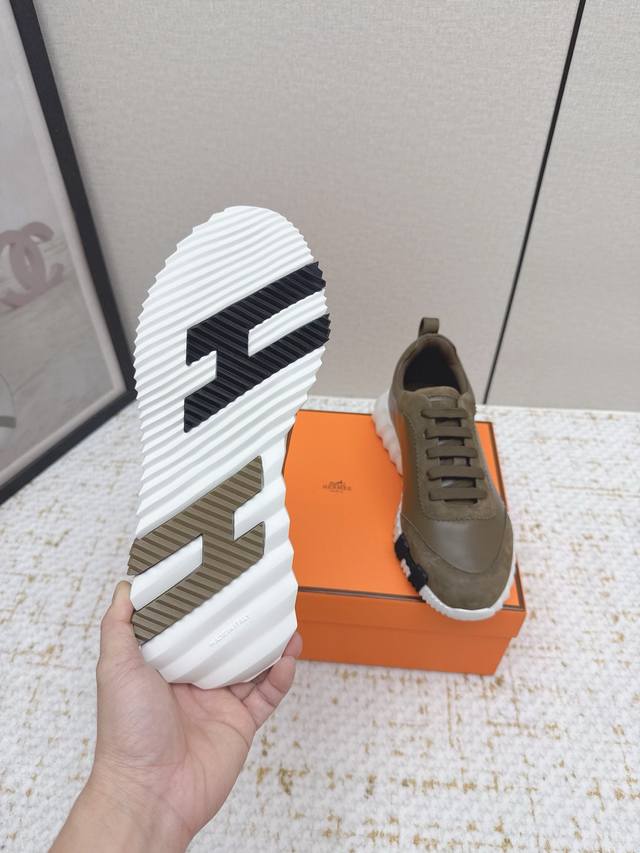 High-quality factory-made Hermes new Bouuncing couple sneakers. The most comfortable Hermes shoes, without a doubt . Extremely lightweight and incredibly stylish, perfect for long walks without fatigue. The overall suede feel is excellent, very beautiful and versatile, incredibly lightweight and comfortable, perfect for both sports and leisure. Superb walking feel! Available in 30+ men's and women's colors. Choose whatever you like, there's always one you'll love! Material: Imported high-gloss suede + original single-piece rain velvet. Lining: Imported inner lining and insole made of special silk sheepskin. Outsole: Seamless combination using Ip+Tpu multi-color lettering German technology irradiation machine. Sizes: Women's 35-41, Men's 38-46. Women's 41, Men's 45-46. Custom orders are non-refundable.