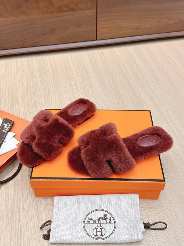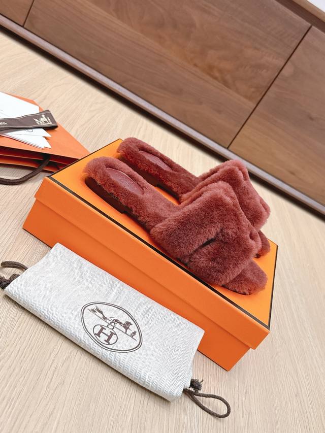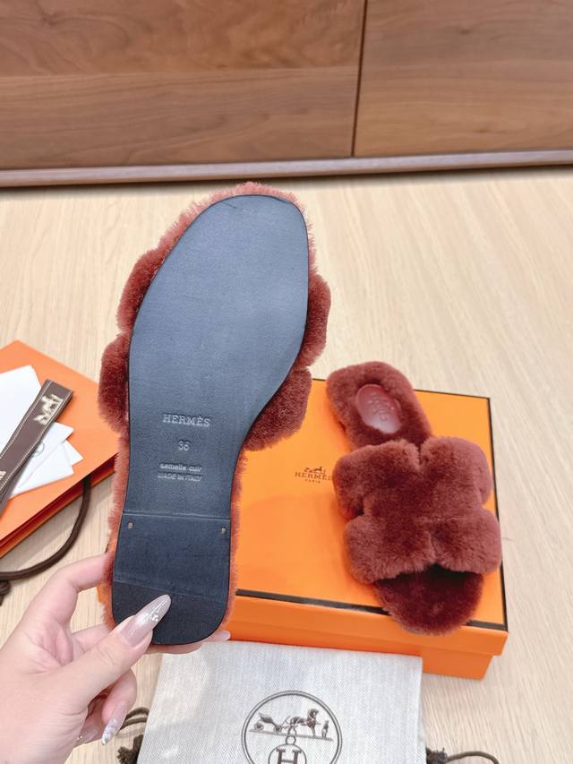 , Autumn/Winter new arrival). The 25Ss new colorway features high-density sheepskin shearling. The fleece is straight and fluffy, looking warm and cute. They look great on and exude elegance. The sole is made of imported Italian cowhide. Sizes 35-42, 40, 41, and 42 are custom-made and non-refundable.