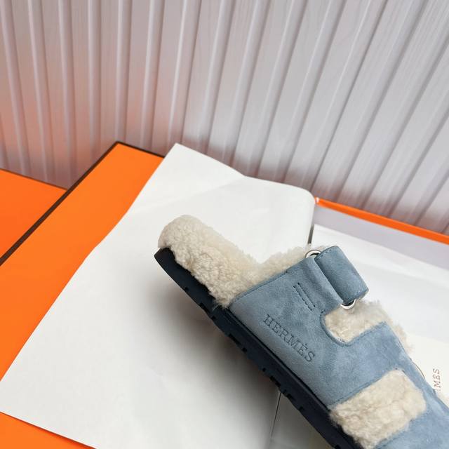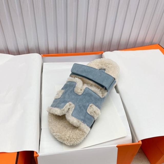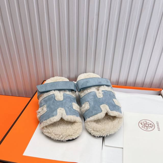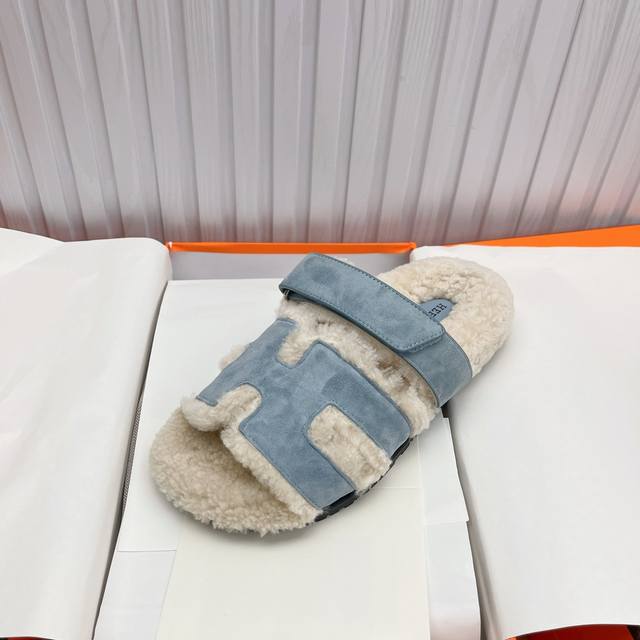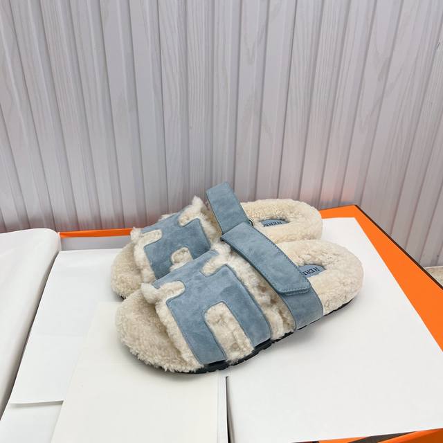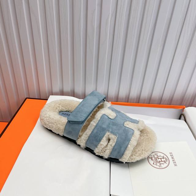 High-quality Hermes wool slippers, the latest trendy sandals and flip-flops, perfect for pairing with colorful socks! Upper: Imported cowhide; Lining: Imported cowhide; Outsole: TPU non-slip and wear-resistant outsole; Women's sizes 35-41.