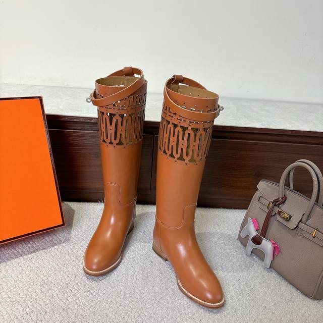 Laser-etched factory price. Hermes Jumping boots, stylish and versatile classic combat boots, super comfortable, every detail is perfect. Original Swift calfskin suede, original 1:1 private mold, pure steel Kelly hardware buckles, original Italian genuine leather combination outsole. Size: 35~41, 40, 41, 42. Custom orders, no returns or exchanges.