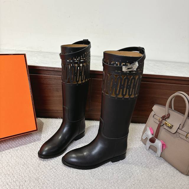 Laser-etched factory price. Hermes Jumping boots, stylish and versatile classic combat boots, super comfortable, every detail is perfect. Original Swift calfskin suede, original 1:1 private mold, pure steel Kelly hardware buckles, original Italian genuine leather combination sole. Size: 35~41, 40, 41, 42. Custom orders, no returns or exchanges.