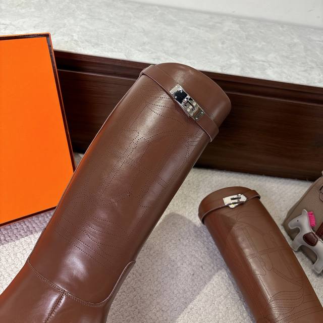 Laser-etched finish, factory price. Hermes Jumping Boots, stylish and versatile classic combat boots, super comfortable, every detail is meticulously crafted. Original Swift calfskin suede, 1:1 original, exclusive private mold, pure steel Kelly hardware buckles, original Italian genuine leather combination outsole. Size: 35~41, 40, 41, 42. Custom orders, no returns or exchanges.