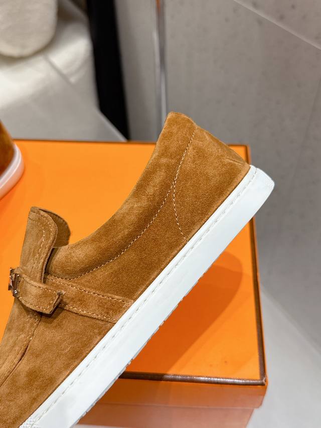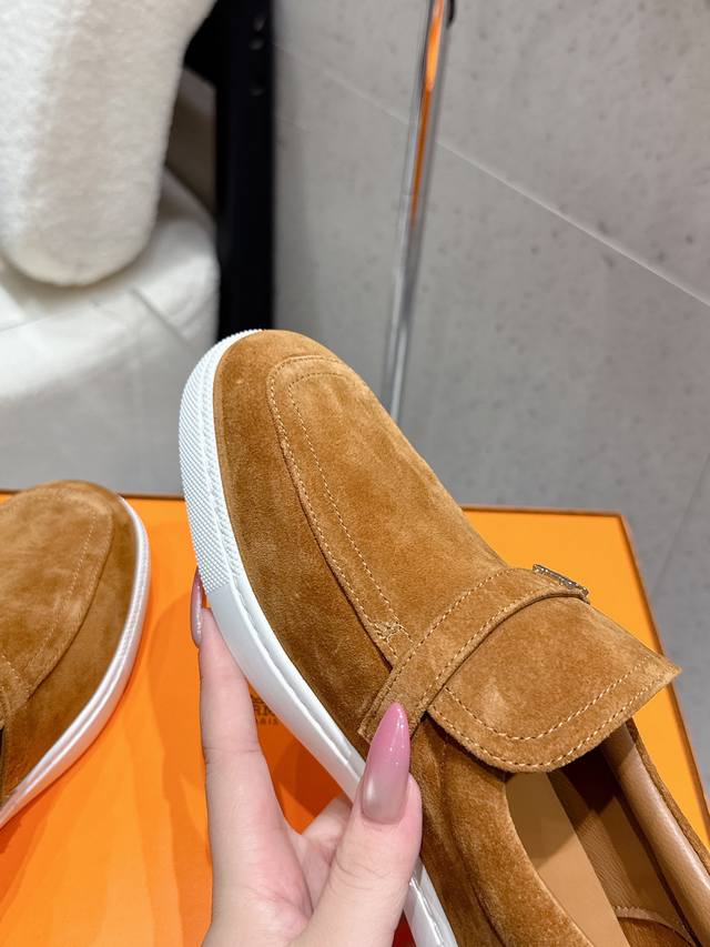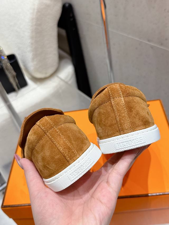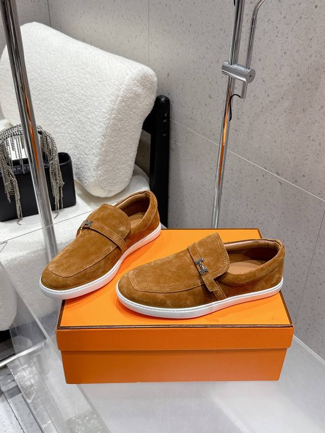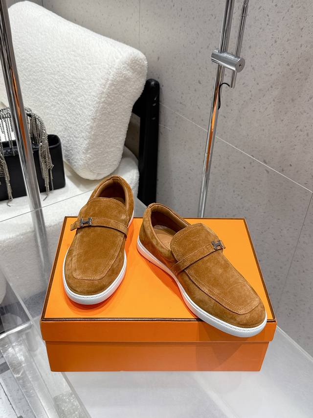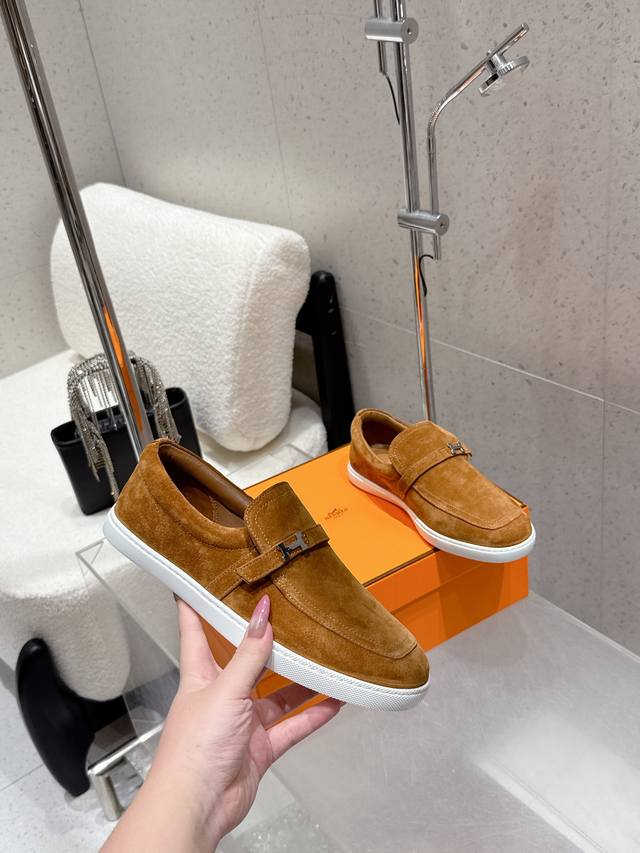Men's +10 DDD Hermes Kelly Buckle Couple Casual Loafers Slip-On Shoes Now Available! DDD Top-Quality Version on the Market! High-Quality Item! Aristocratic Elegance! DDD Hermes rarely releases flat casual shoes, and this one features the classic palladium-plated Kelly buckle! Creates a stylish urban look, perfectly embodying Hermes' noble and elegant style! Seemingly simple yet full of details, these ordinary sneakers become instantly stunning with the Kelly buckle! Simple, super versatile, and incredibly comfortable. DDD Materials: Imported cowhide upper, imported sheepskin lining and insole, original mold-made outsole. DDD Sizes: 35-45 (Women's 40, Men's 45, custom-made). DDD